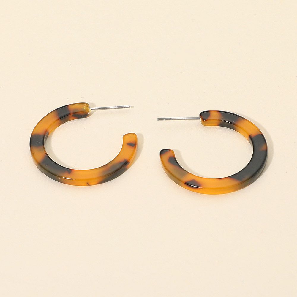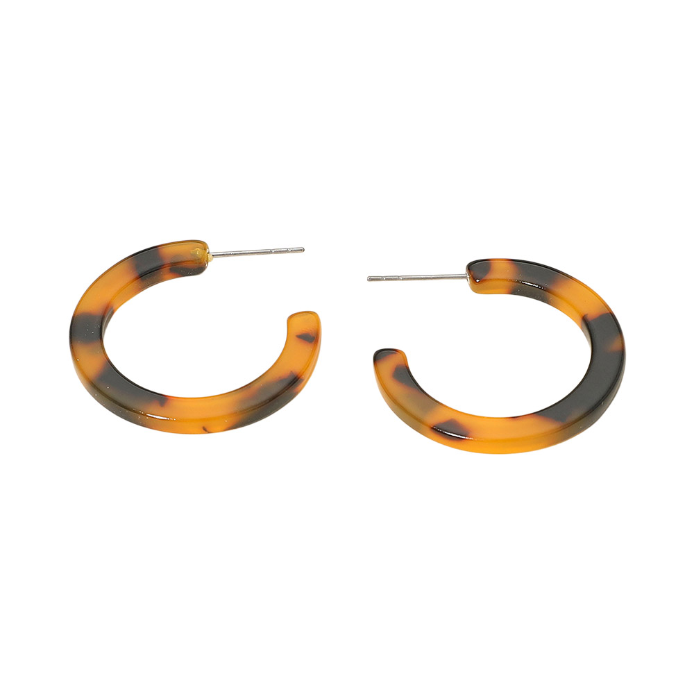 • These classic patterned open hoop earrings feature a sleek circular design with a subtle marbled effect that adds depth and style. Lightweight and effortlessly chic, they’re ideal for everyday wear or pairing with modern, minimalist outfits for a touch of timeless sophistication.