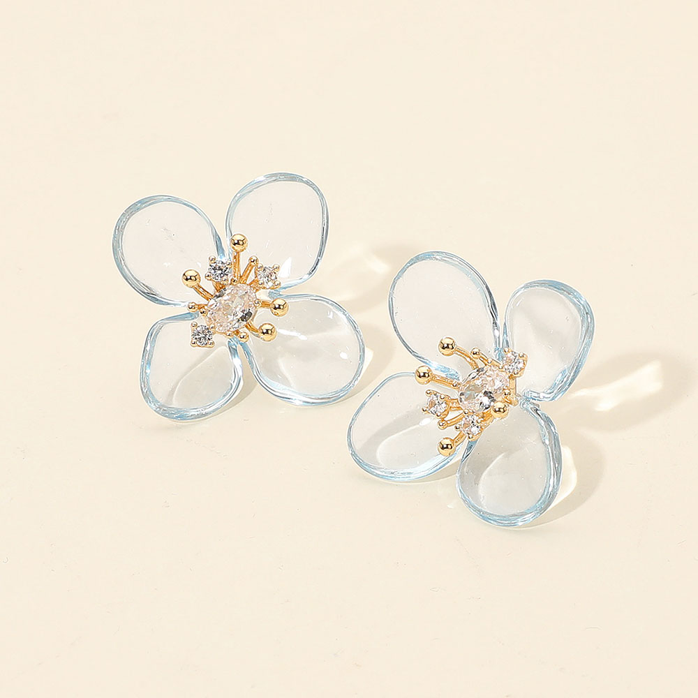Rhinestone Accent Transparent Resin Petal Flower Earrings Rhinestone Accent Transparent Resin Petal Flower Earrings Rhinestone Accent Transparent Resin Petal Flower Earrings