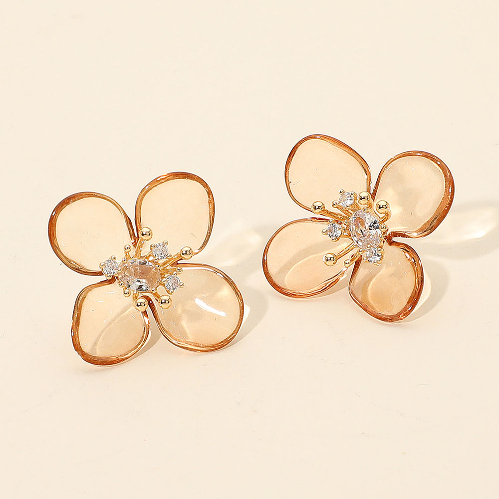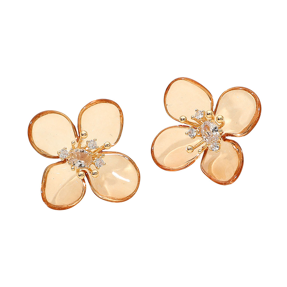 Rhinestone Accent Transparent Resin Petal Flower Earrings Rhinestone Accent Transparent Resin Petal Flower Earrings Rhinestone Accent Transparent Resin Petal Flower Earrings