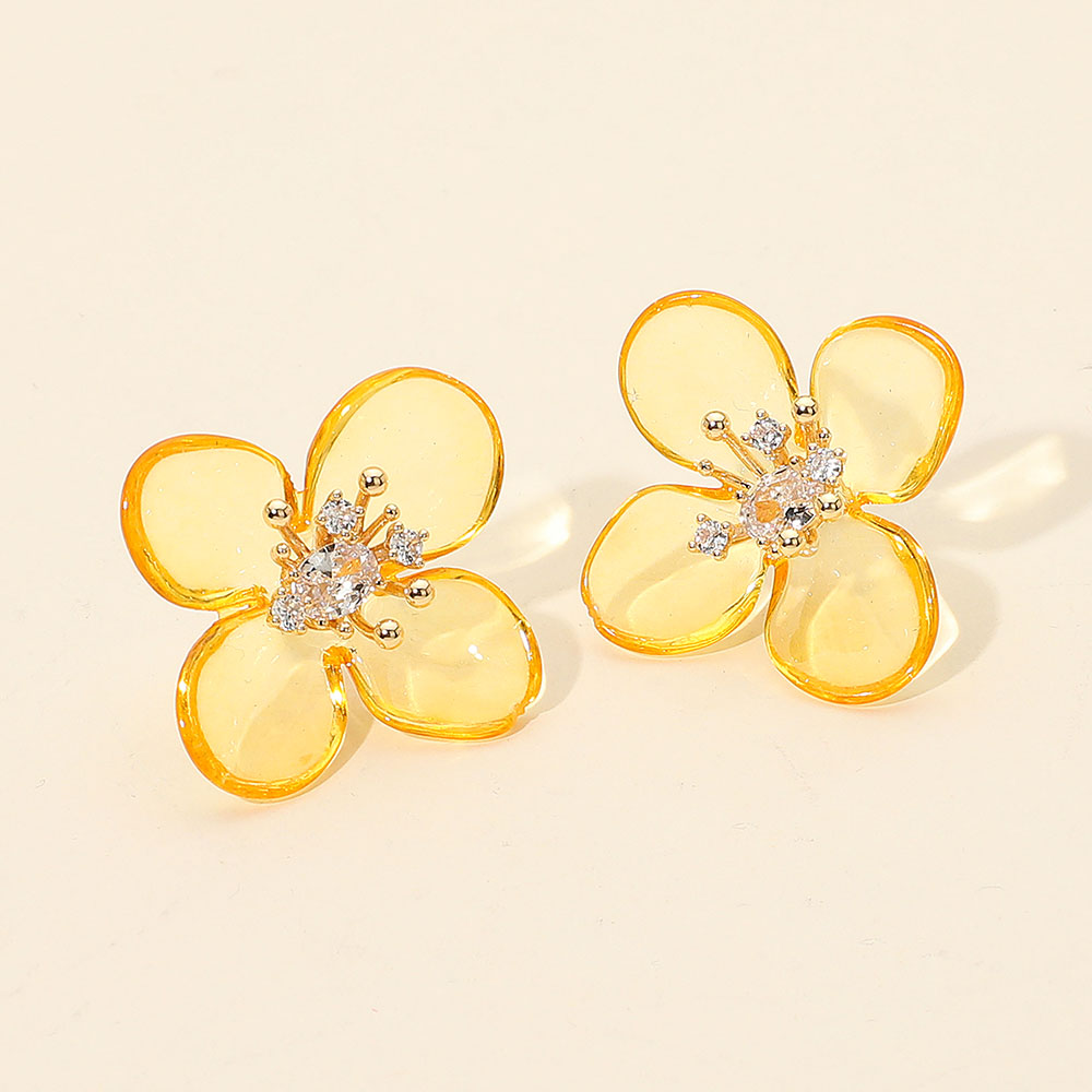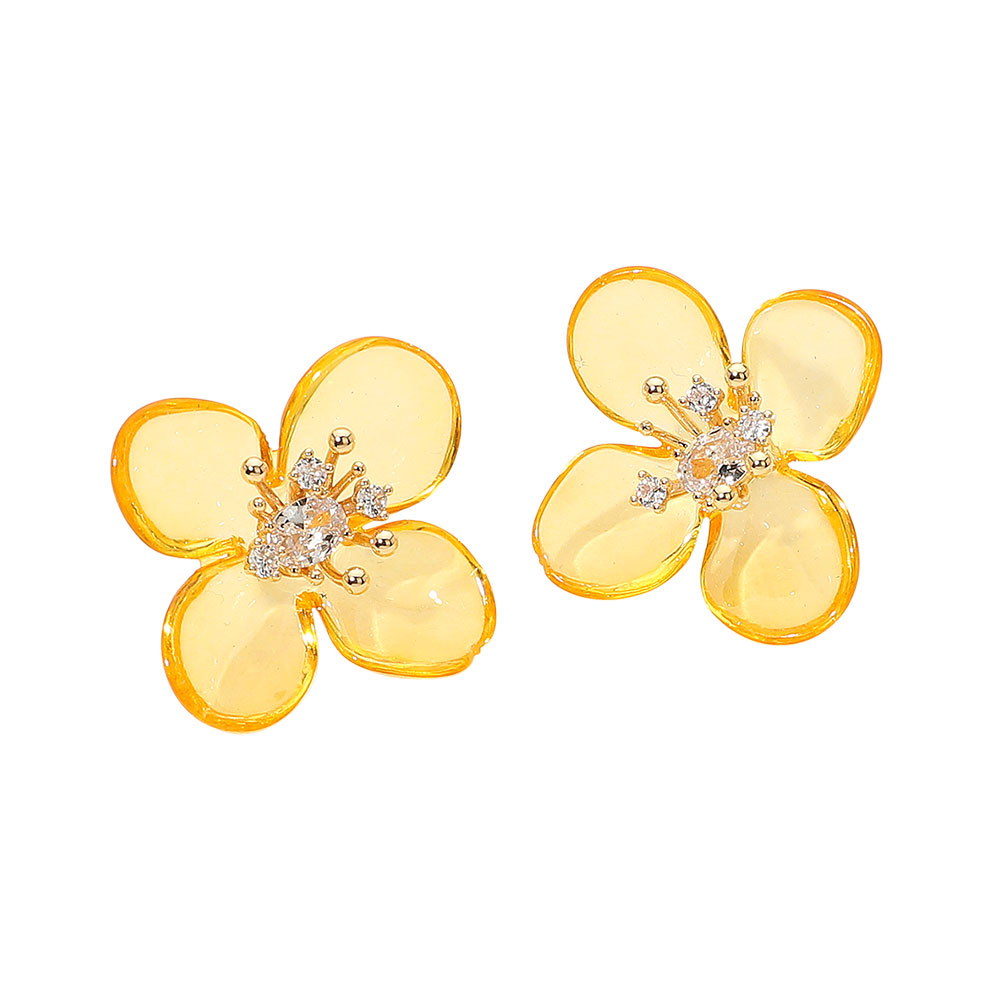 Rhinestone Accent Transparent Resin Petal Flower Earrings Rhinestone Accent Transparent Resin Petal Flower Earrings Rhinestone Accent Transparent Resin Petal Flower Earrings