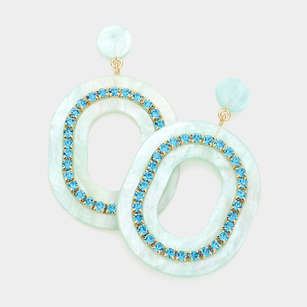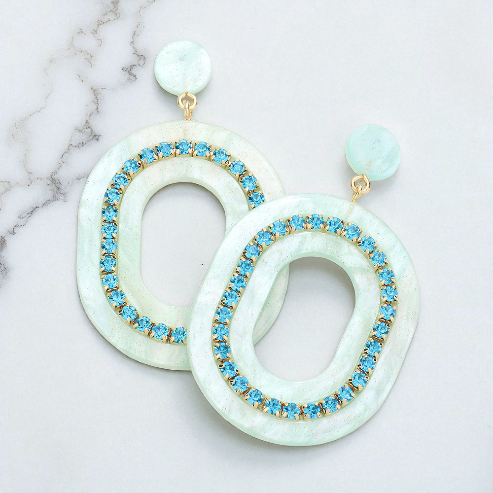 Rhinestone Embellished Celluloid Acetate Open Oval Dangle Earrings