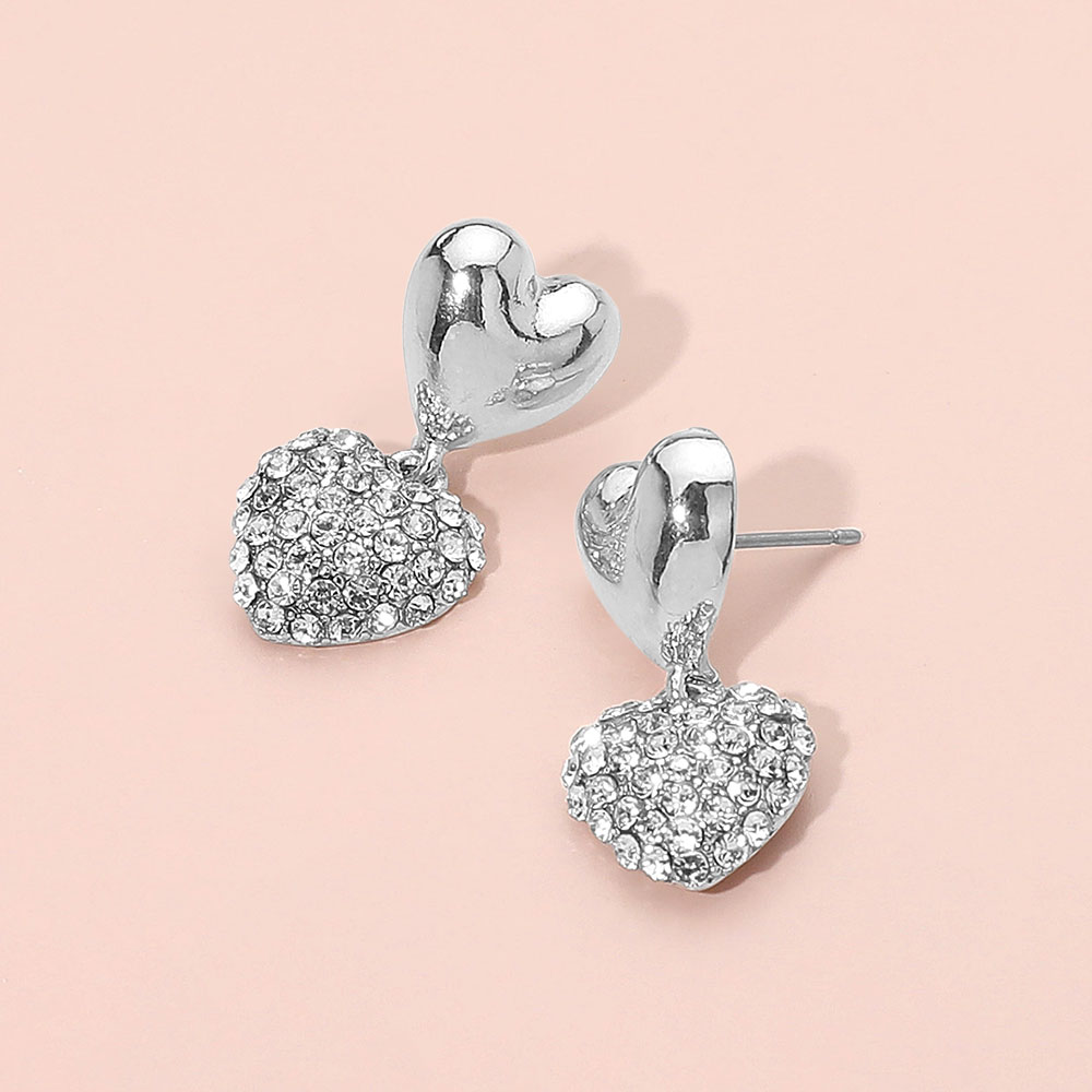 • Add a touch of romance with these sparkling double heart earrings, featuring a sleek metallic top heart and a dazzling crystal-accented lower heart. Perfect for day-to-night wear, they bring elegant charm and a playful shimmer to your style effortlessly.