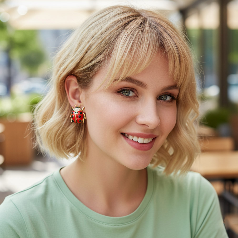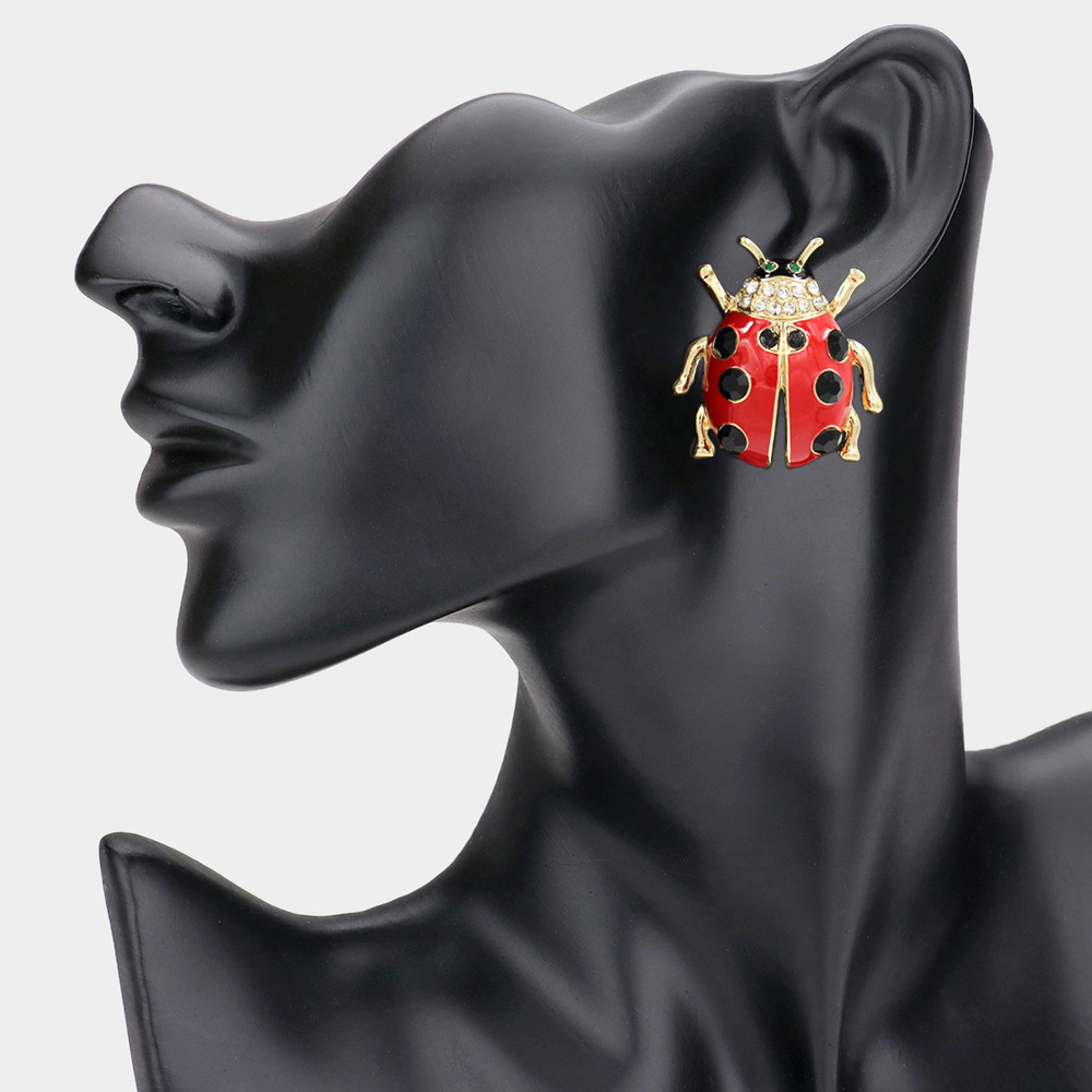 Details • Size : 1.2" X 1.4" • Post Back • Charming ladybug stud earrings designed with enamel finish and crystal accents, adding playful elegance to your style. Perfect for casual wear, themed events, or gifting, these fun earrings bring a touch of whimsy and sparkle, making them a delightful addition to any jewelry collection. • Lead and Nickel Compliant