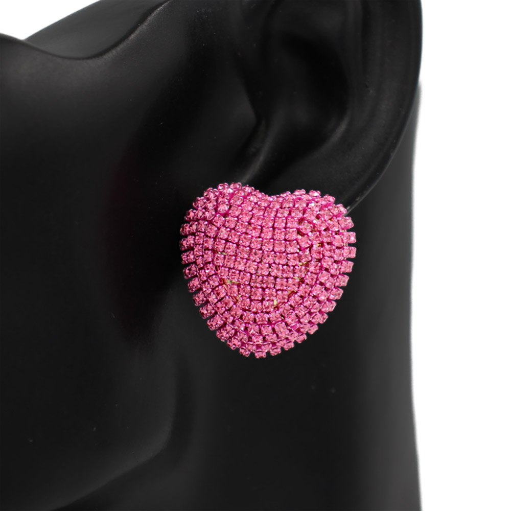 • Elegant heart stud earrings designed with a dimensional pavĂ© surface that delivers eye-catching sparkle and refined texture. A timeless yet statement-ready accessory ideal for boutiques, gift collections, special occasions, and everyday looks that elevate modern styling.