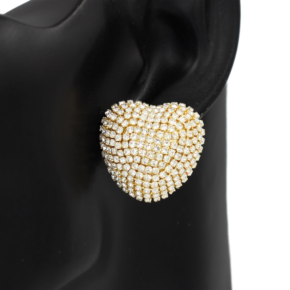 • Elegant heart stud earrings designed with a dimensional pavĂ© surface that delivers eye-catching sparkle and refined texture. A timeless yet statement-ready accessory ideal for boutiques, gift collections, special occasions, and everyday looks that elevate modern styling.
