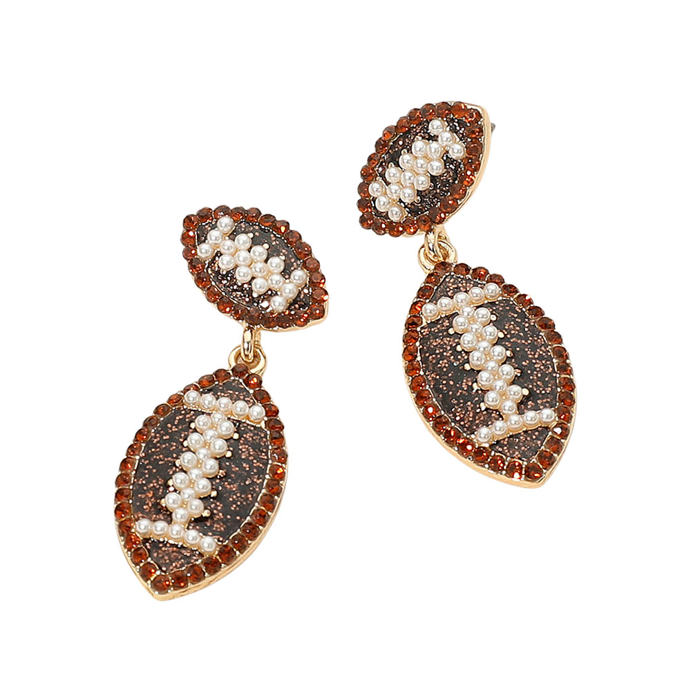 Rhinestone Pearl Embellished Football Dangle Earrings