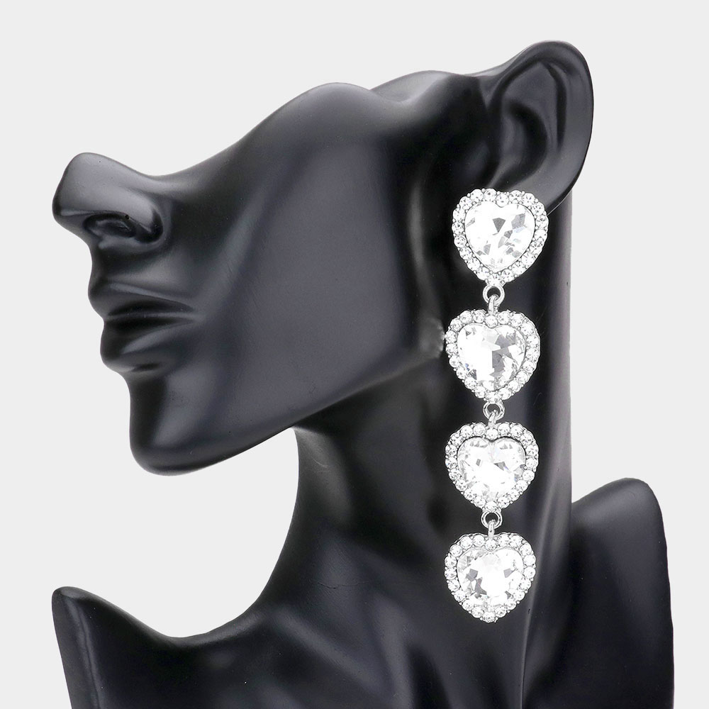 Heart Rhinestone Pave Fringe Down Evening Earrings
