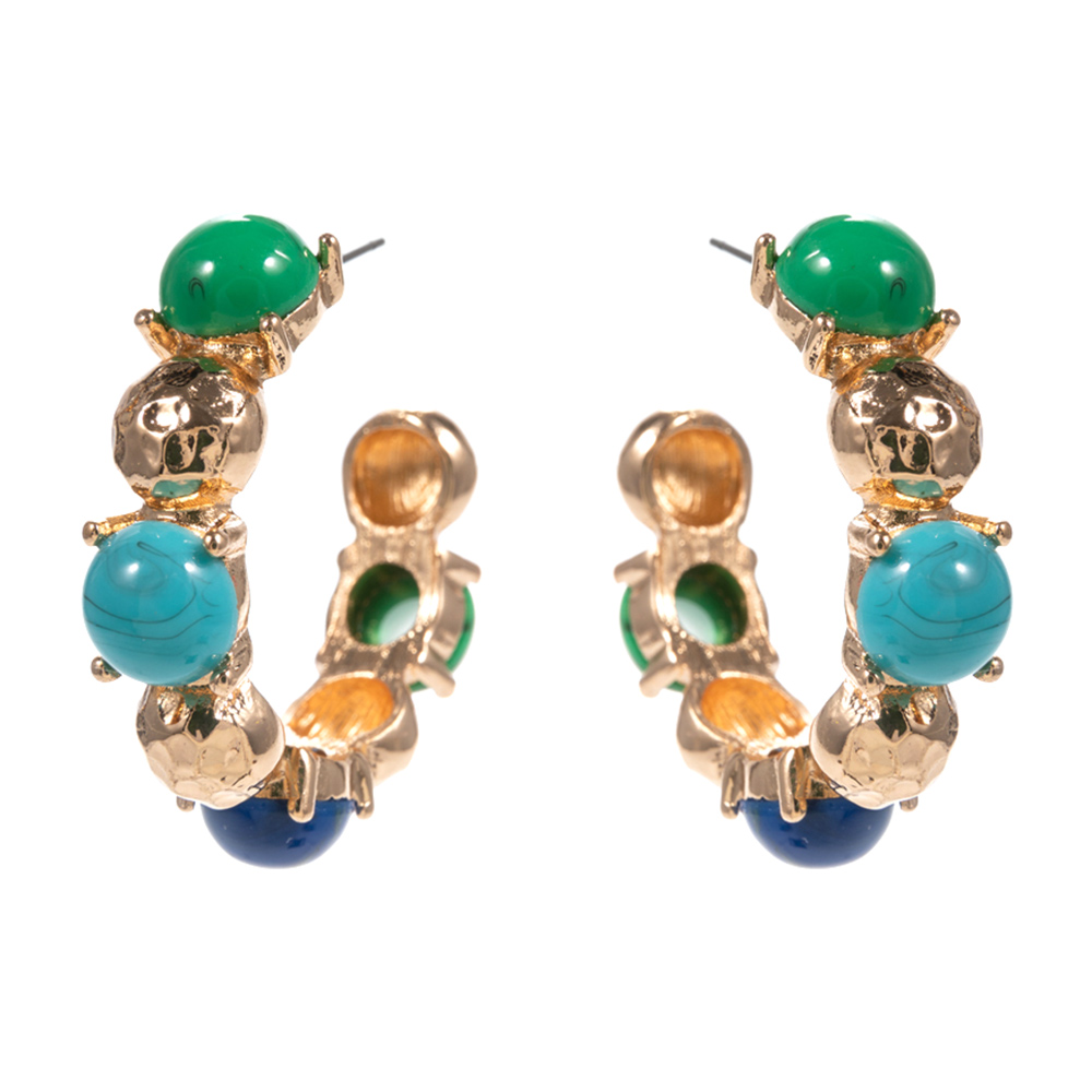 • These beaded hoop earrings feature a bold curved silhouette accented with mixed shape bead details for a playful yet elevated statement. Designed with dimensional texture and eye-catching form, they add personality to everyday outfits and styled looks. A versatile accessory ideal for boho-inspired collections, fashion-forward assortments, or gifting, offering a unique balance of structure and charm.