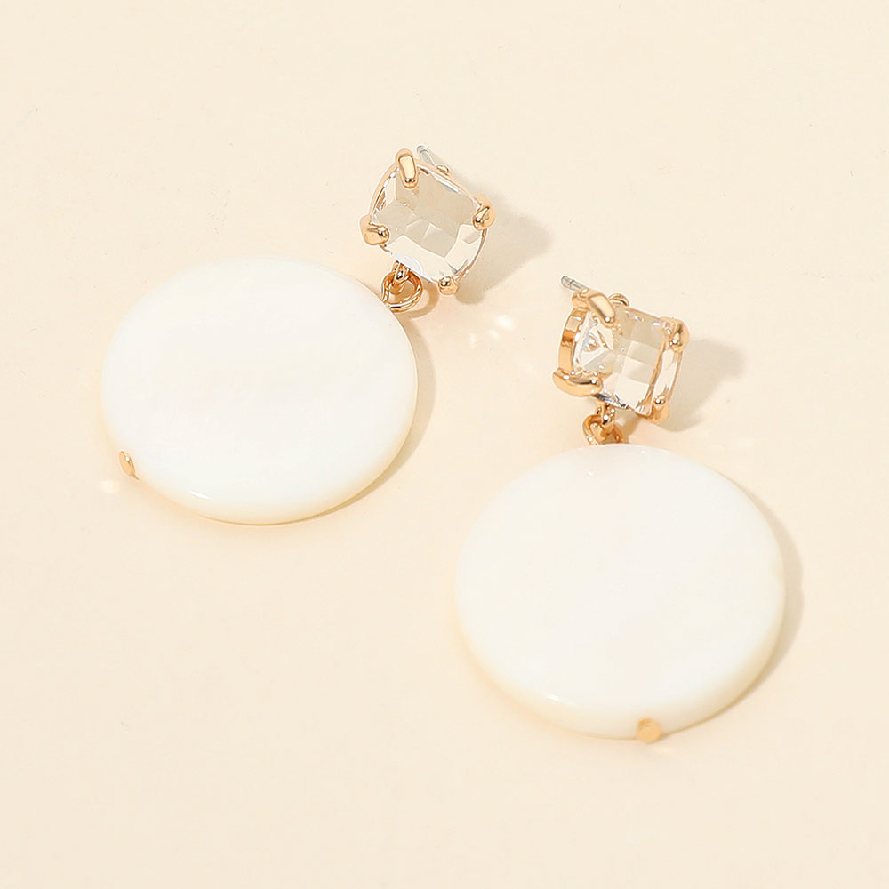 Details • Size : 0.6" X 2.5" • Post Back • These elegant drop earrings feature smooth round discs paired with sparkling gem accents for a refined, modern look. Lightweight and versatile, they elevate both casual and dressy outfits, making them a stylish accessory for everyday wear or special occasions. • Lead and Nickel Compliant