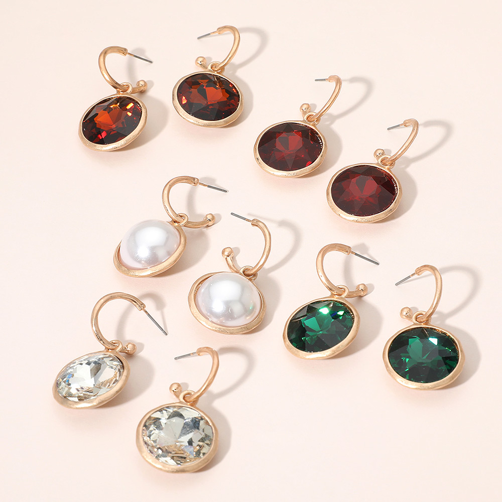 Details • Size : 0.8" X 1.75" • Post Back • Add a refined sparkle to your style with these Round Pearl Drop Hoop Earrings. Featuring a stunning faceted stone set in a sleek round frame, these earrings offer timeless charm and elegance, perfect for both everyday wear and evening occasions. • Lead and Nickel Compliant