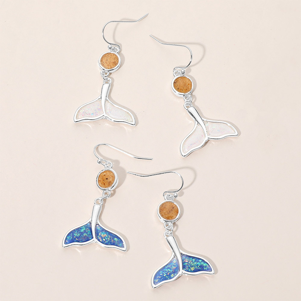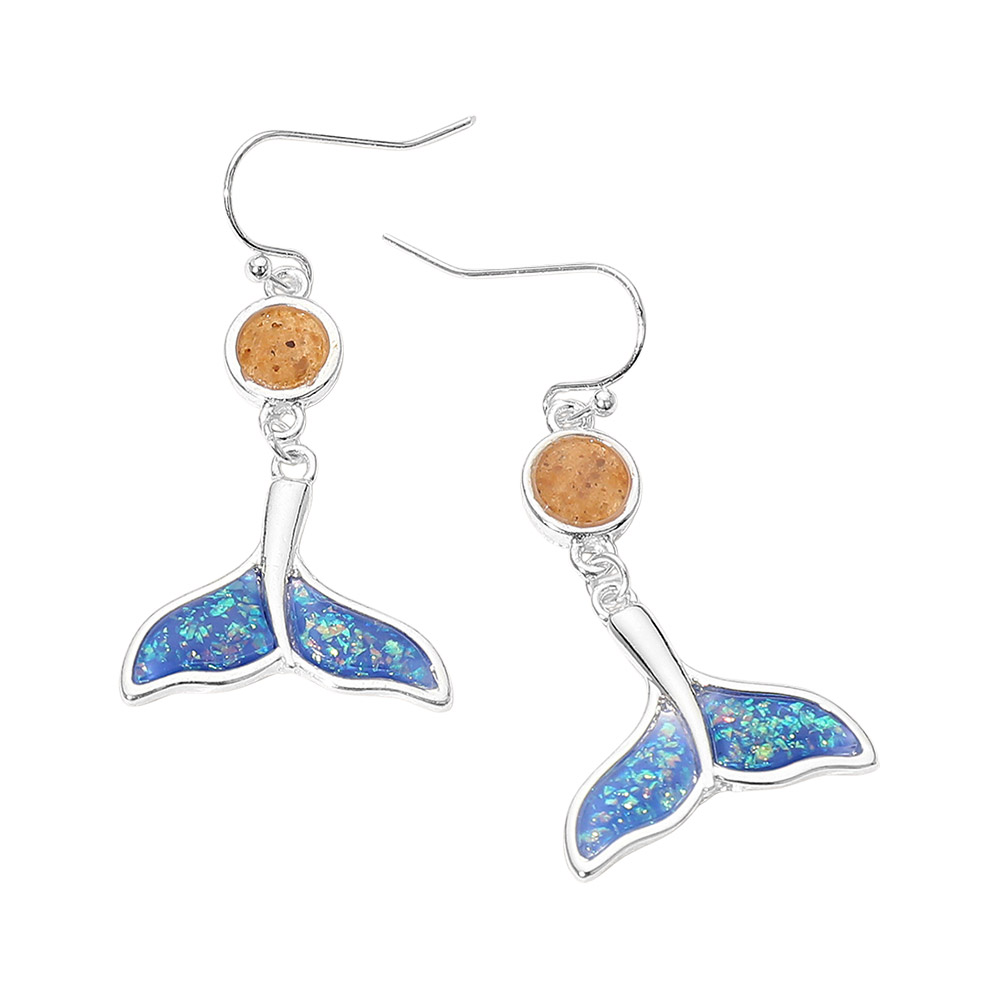 • Ocean inspired whale tail charm drop earrings designed with playful movement and a coastal theme. A fun statement accessory ideal for summer outfits, beach vacations, seaside boutiques, and gift assortments, offering eye catching detail and seasonal appeal without overpowering everyday looks.