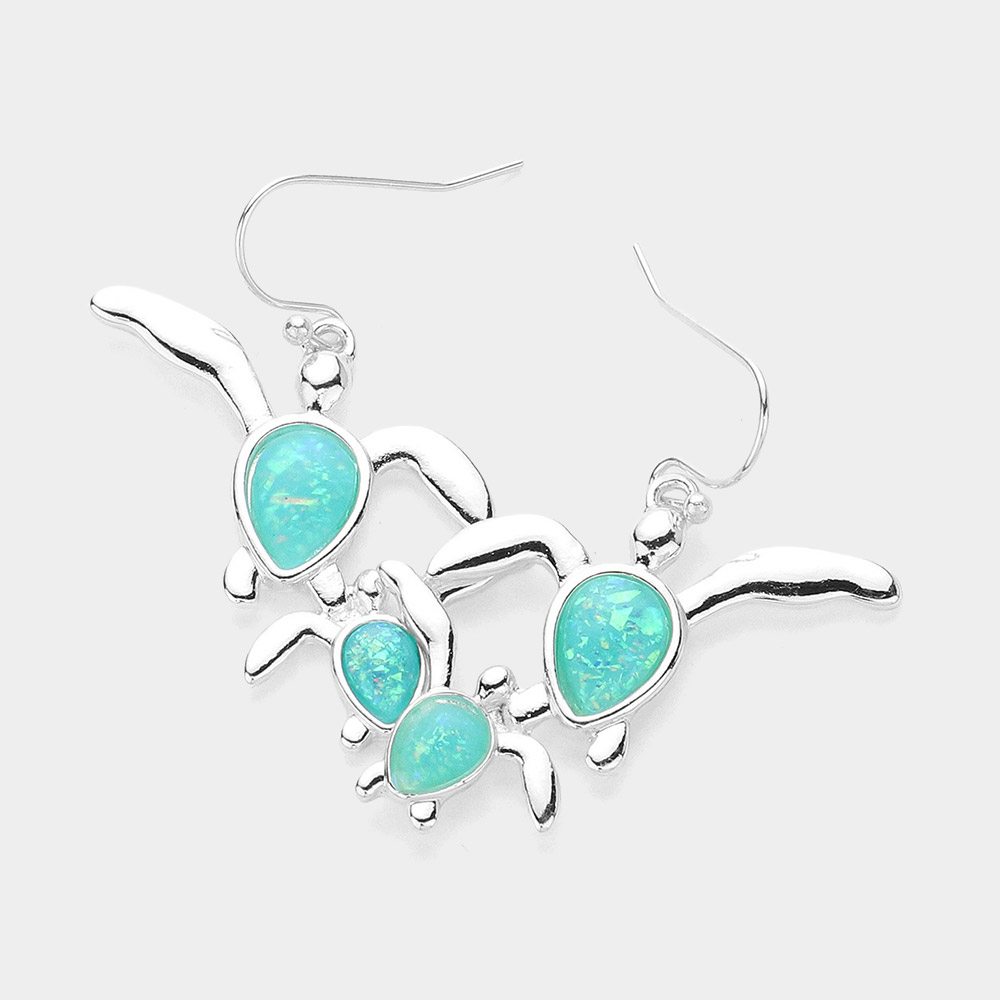 Sea Glass Embossed Sea Turtle Dangle Earrings