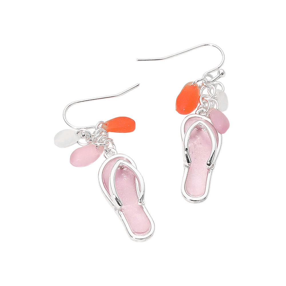 • Flip flop dangle earrings designed with a fun beach inspired silhouette and layered charm accents that create playful movement. Ideal for summer assortments, resort shops, coastal boutiques, and vacation themed displays, offering a lighthearted novelty style customers love for warm weather looks.