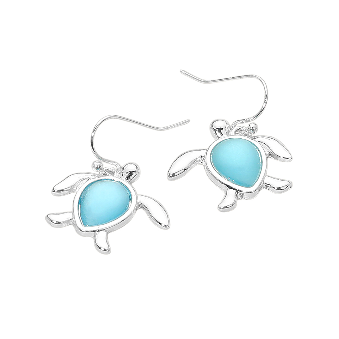 Sea Glass Sea Turtle Charm Drop Dangle Earrings
