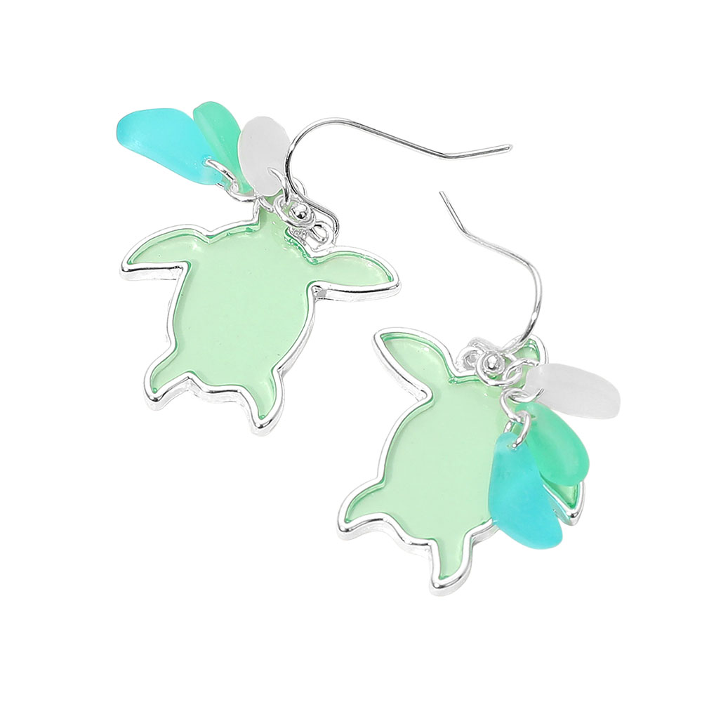 Sea Glass Sea Turtle Drop Dangle Earrings