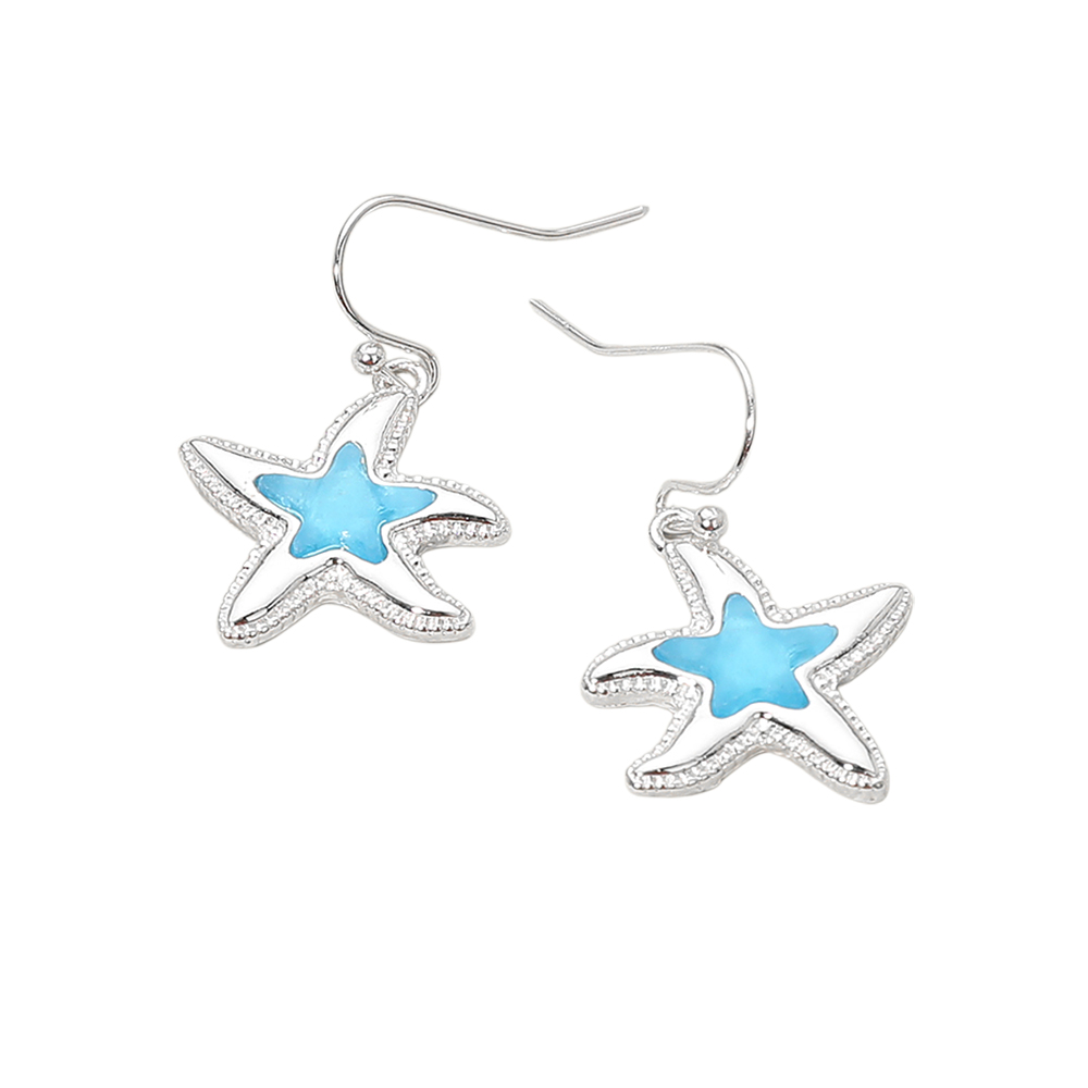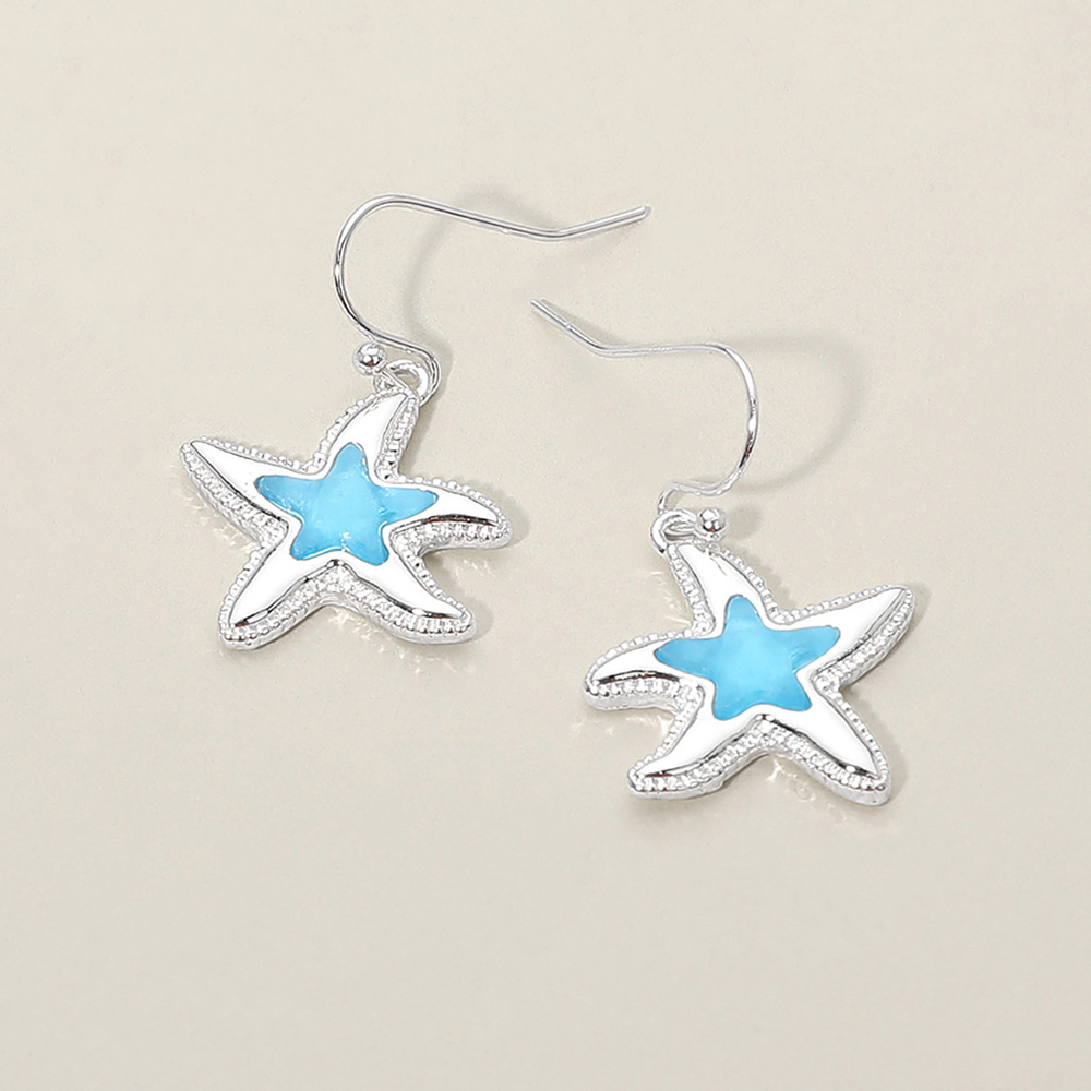 • Playful starfish dangle earrings featuring a seaside-inspired silhouette with smooth detailing and gentle movement. Designed for effortless everyday wear, these hook earrings add a fun coastal touch to casual looks, summer outfits, vacations, and themed accessory collections, making them a versatile retail favorite.