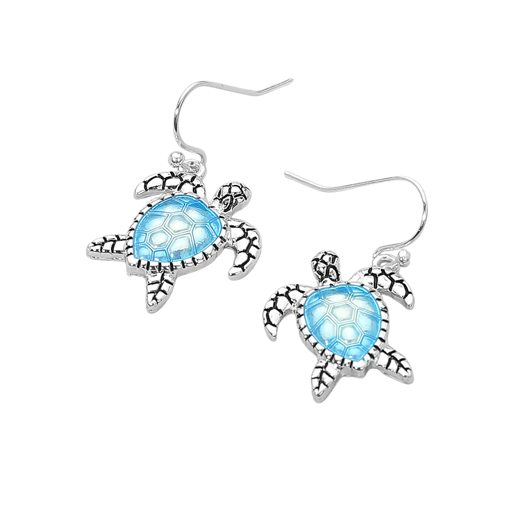 • Playful sea turtle dangle earrings designed with a detailed shell motif and graceful hook silhouette. Lightweight with charming movement, these earrings are ideal for beach-inspired assortments, summer collections, resort wear displays, gift shops, and ocean-themed accessory selections for everyday styling.