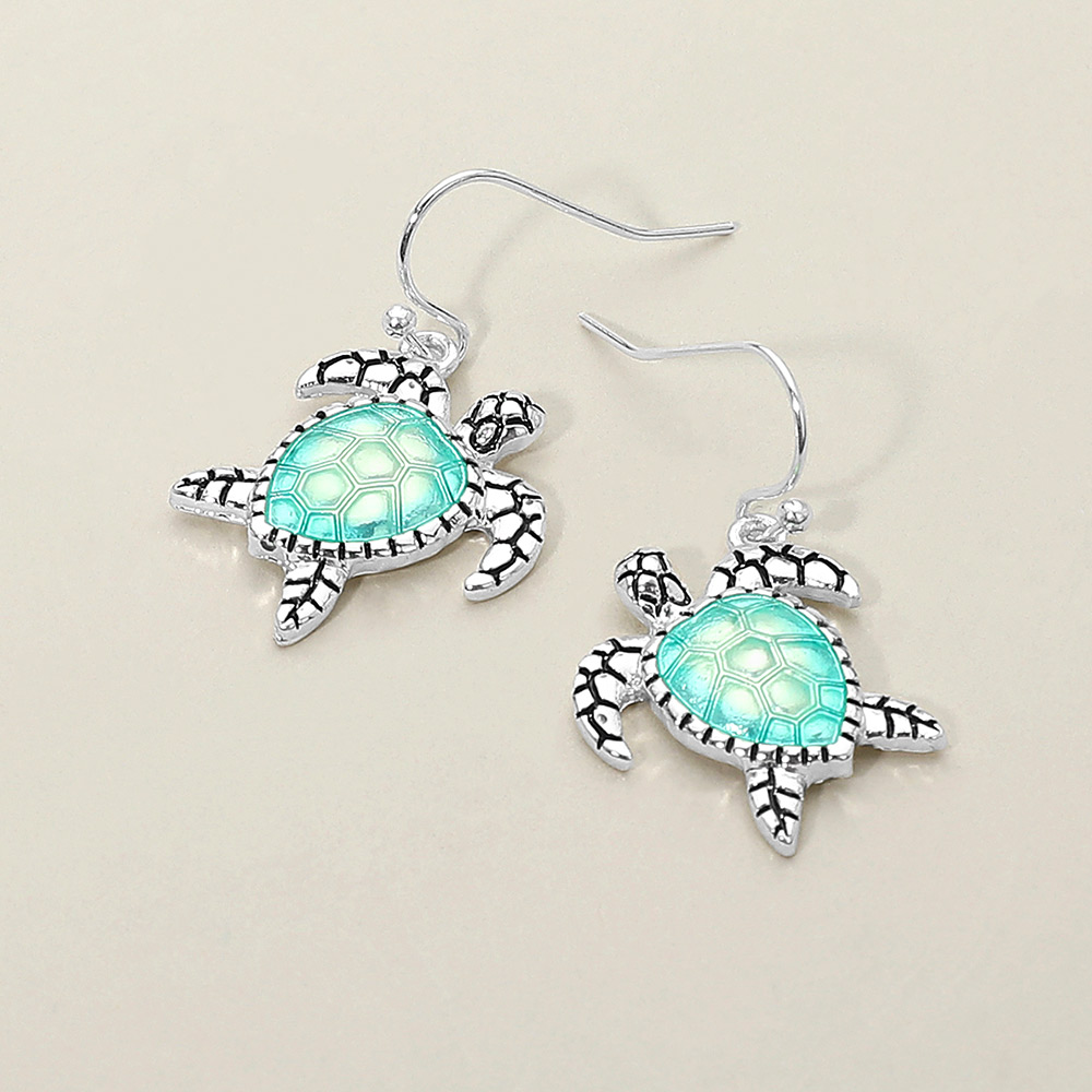 • Playful sea turtle dangle earrings designed with a detailed shell motif and graceful hook silhouette. Lightweight with charming movement, these earrings are ideal for beach-inspired assortments, summer collections, resort wear displays, gift shops, and ocean-themed accessory selections for everyday styling.