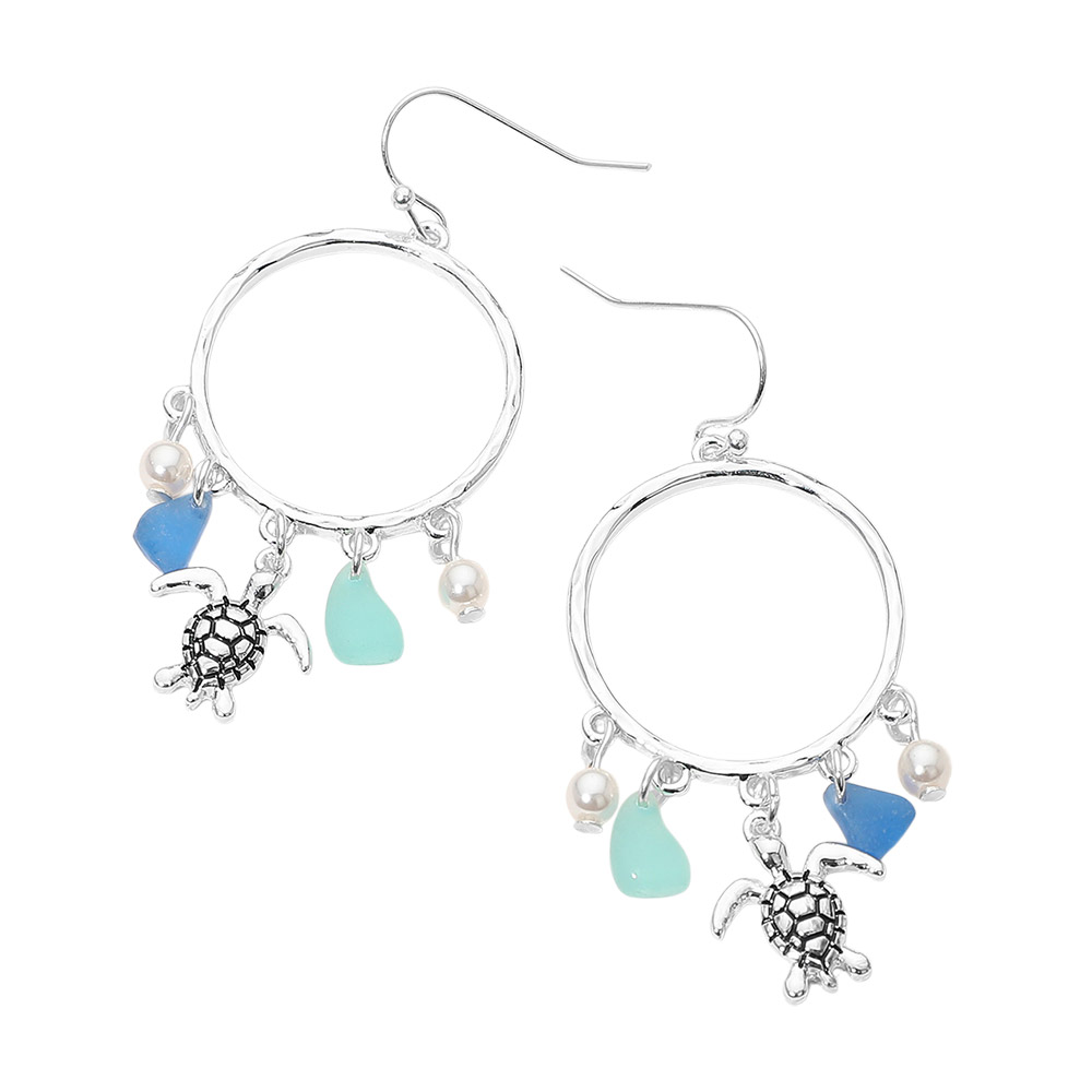 Sea Turtle Sea Glass Charm Drop Open Ring Dangle Earrings Sea Turtle Sea Glass Charm Drop Open Ring Dangle Earrings