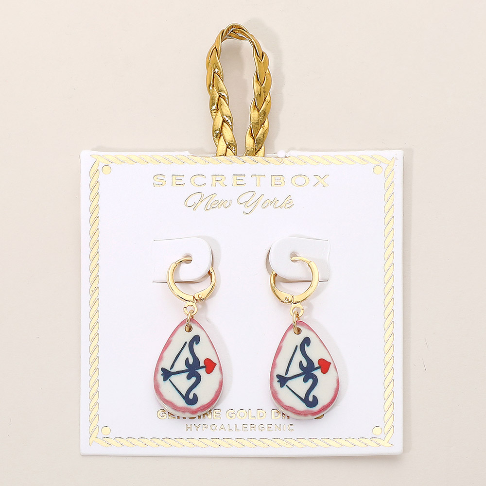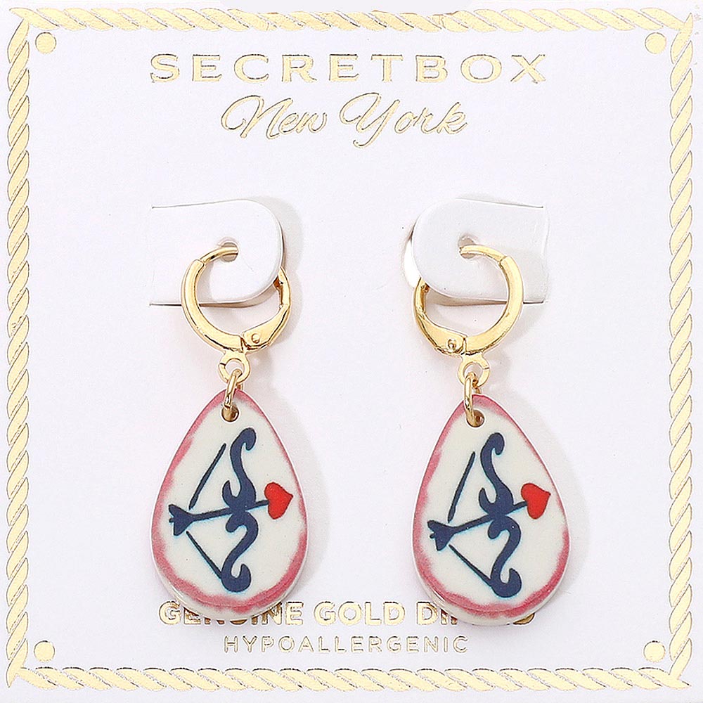 Details • Size : 0.7" X 1.6" • Huggie Back • Charming teardrop dangle earrings featuring a Cupid archer motif on lightweight drops, paired with hypoallergenic hoops. A playful accessory with a symbolic, romantic design perfect for gifting or everyday wear. Ideal for adding a touch of whimsy to any style. • Gold Dipped • Hypoallergenic