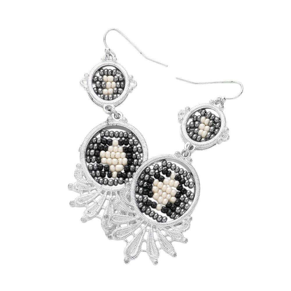 Seed Beaded Double Disc with Fringe Dangle Earrings