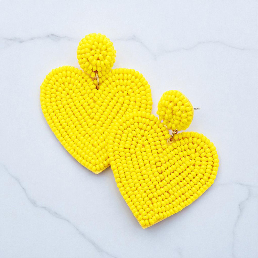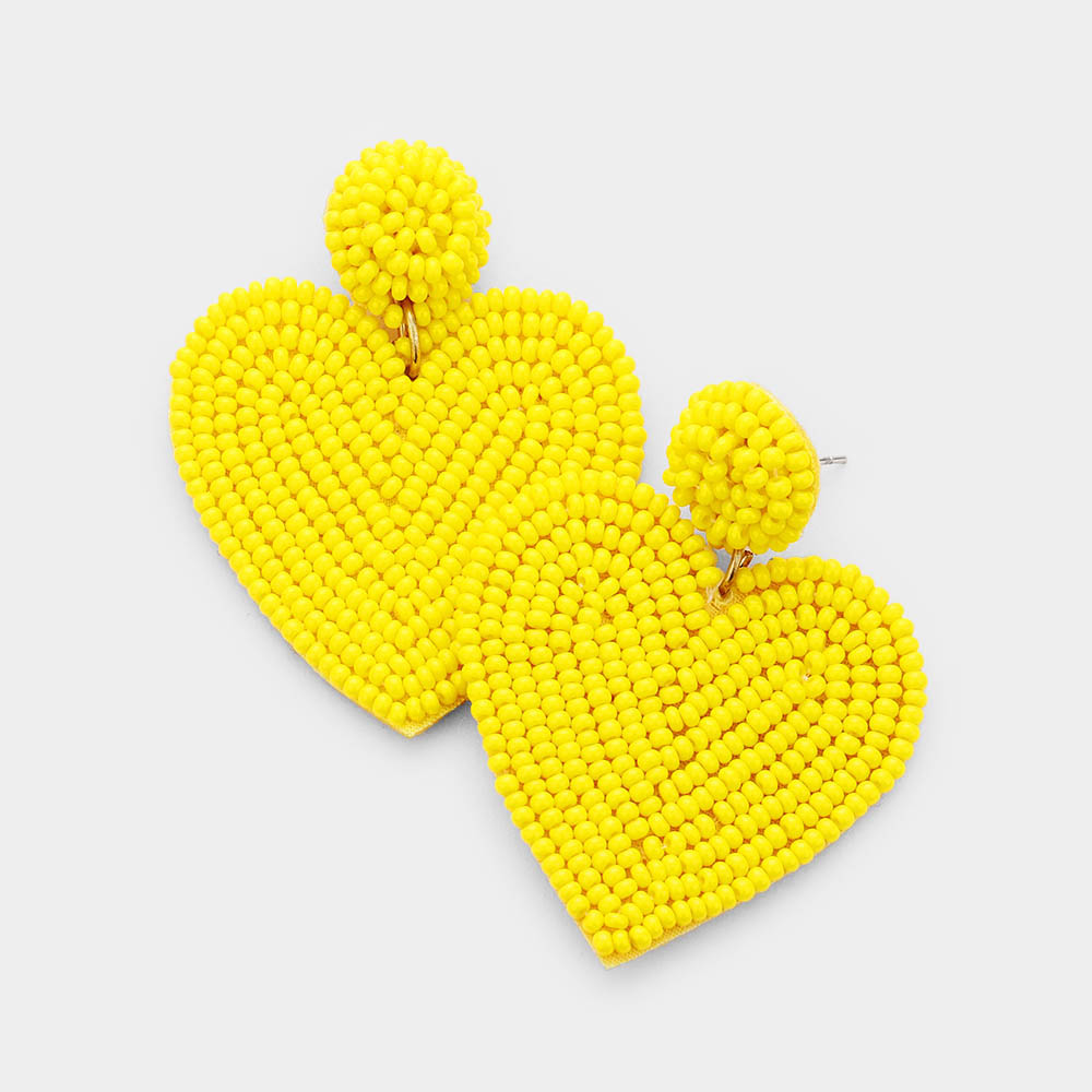 Seed Beaded Heart Drop Earrings