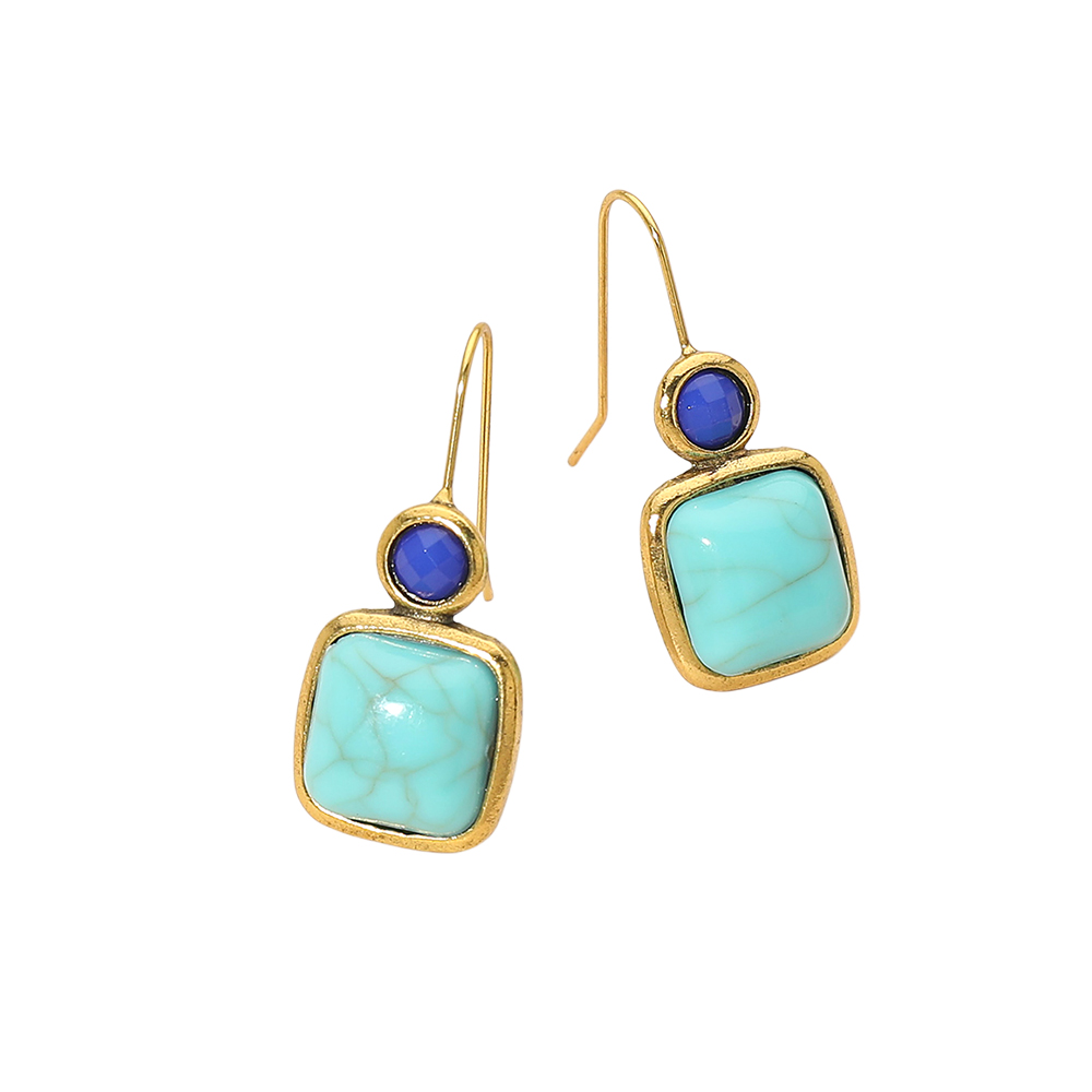 Details • Size : 0.5" X 1.25" • Fish Hook Back • These geometric drop hook earrings feature a balanced stacked design with smooth accent details that create a modern yet timeless silhouette. Lightweight and easy to wear, they offer graceful movement and refined style, making them ideal for everyday outfits, resort looks, or curated jewelry collections seeking versatile statement pieces. • Lead and Nickel Compliant