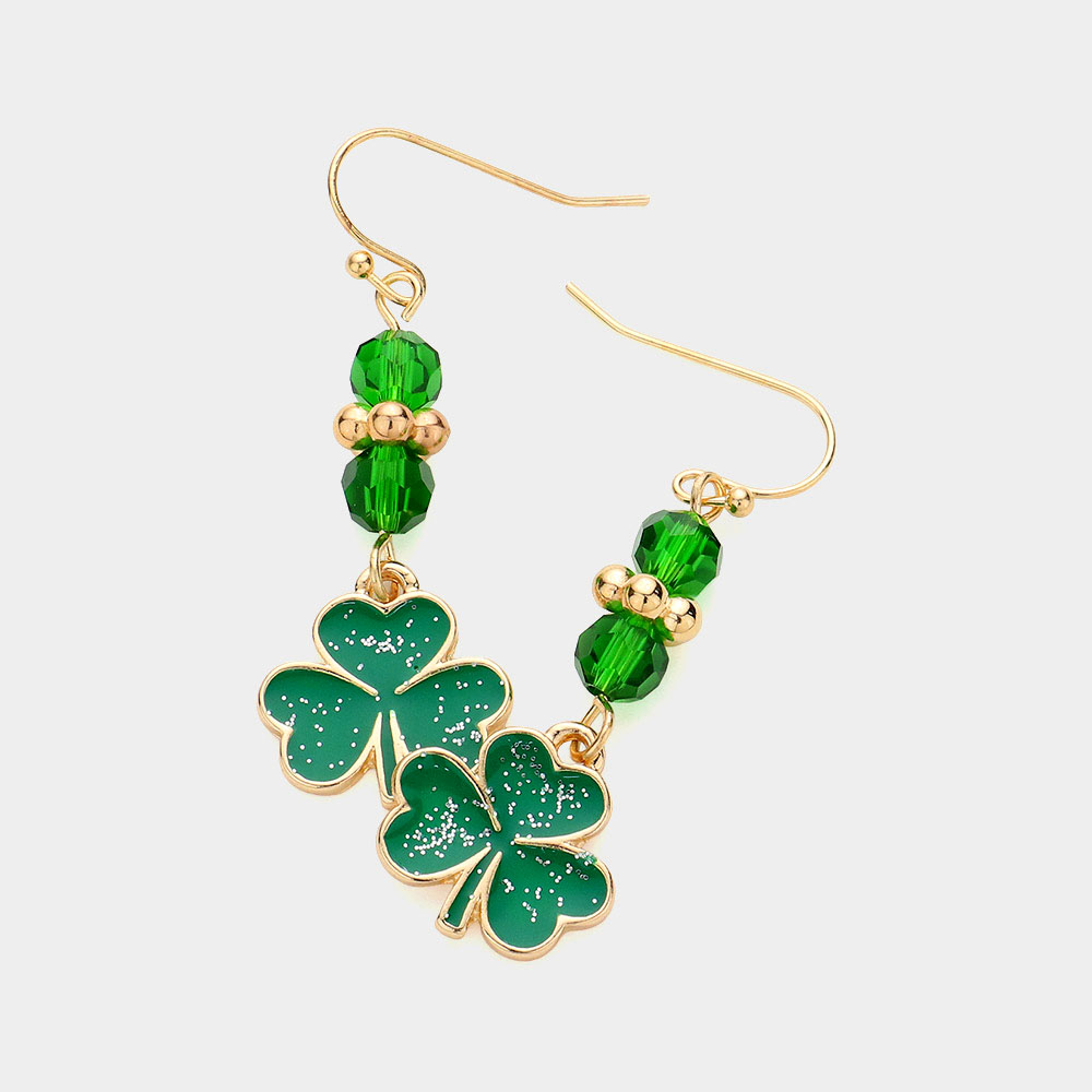 St Patricks Day Beads Shamrock Clover Dropdown Earrings