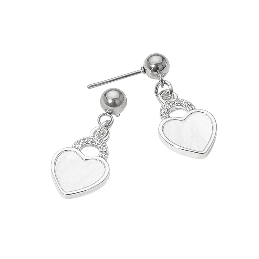 Stainless Steel CZ Stone Accent Mother of Pearl Heart Charm Dangle Earrings Stainless Steel CZ Stone Accent Mother of Pearl Heart Charm Dangle Earrings Stainless Steel CZ Stone Accent Mother of Pearl Heart Charm Dangle Earrings