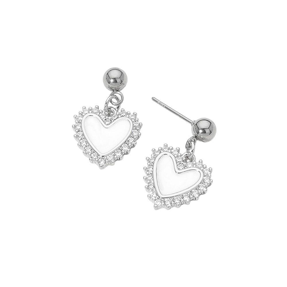 • Charming heart drop earrings designed with a smooth center accent and a sparkling halo-style border for an elegant, feminine look. Lightweight and easy to wear, these earrings add graceful movement and shine, making them ideal for everyday outfits, special occasions, gifting, and boutique jewelry collections.