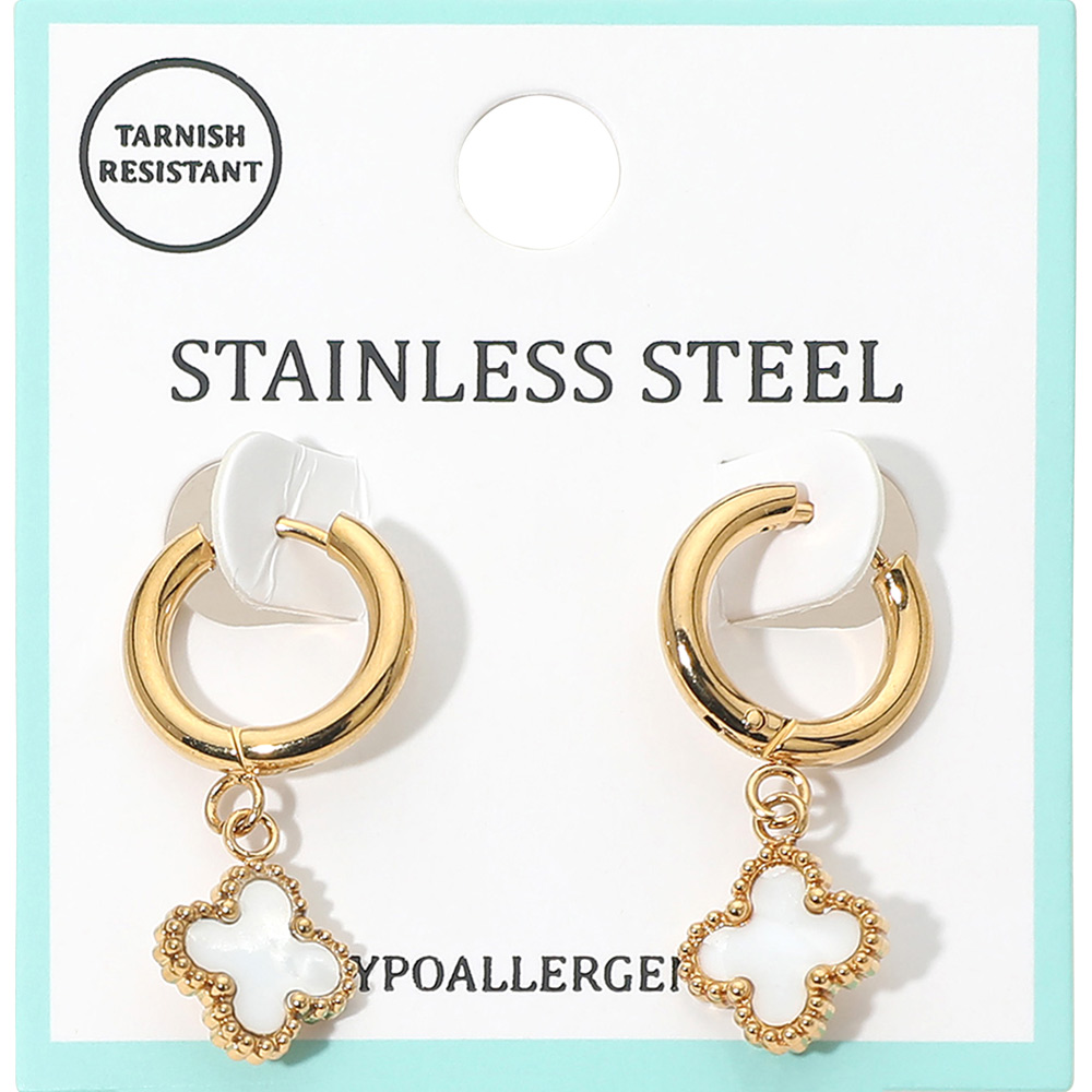 Stainless Steel Mother of Pearl Quatrefoil Charm Drop Dangle Huggie Hoop Earrings Stainless Steel Mother of Pearl Quatrefoil Charm Drop Dangle Huggie Hoop Earrings Stainless Steel Mother of Pearl Quatrefoil Charm Drop Dangle Huggie Hoop Earrings