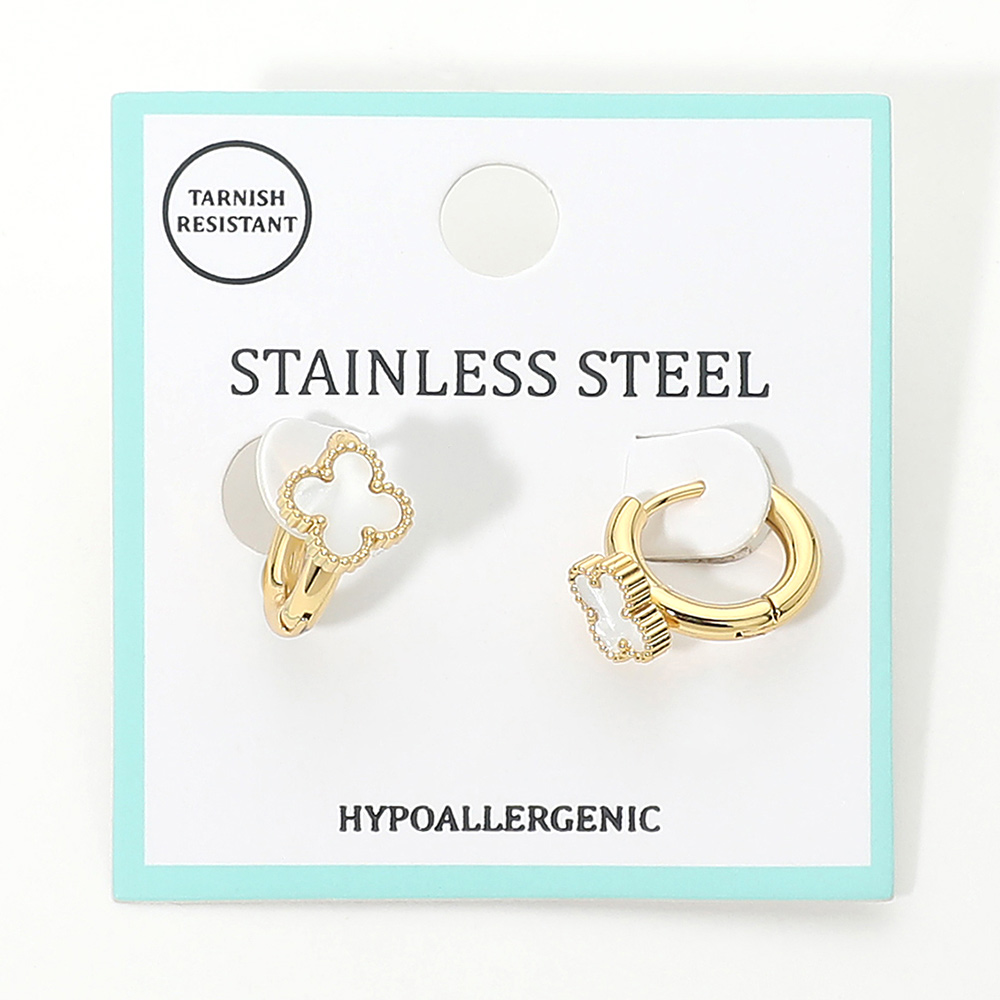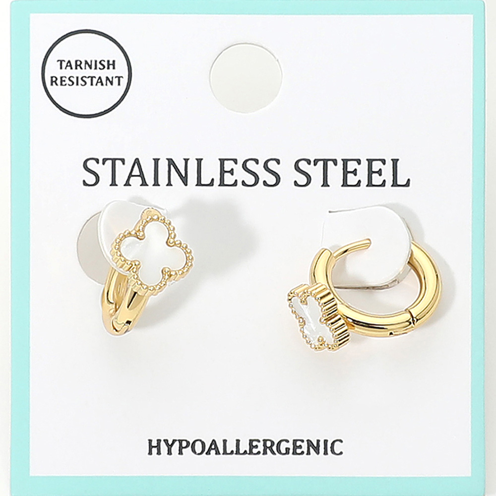 Stainless Steel Quatrefoil Accent Huggie Hoop Earrings Stainless Steel Quatrefoil Accent Huggie Hoop Earrings Stainless Steel Quatrefoil Accent Huggie Hoop Earrings