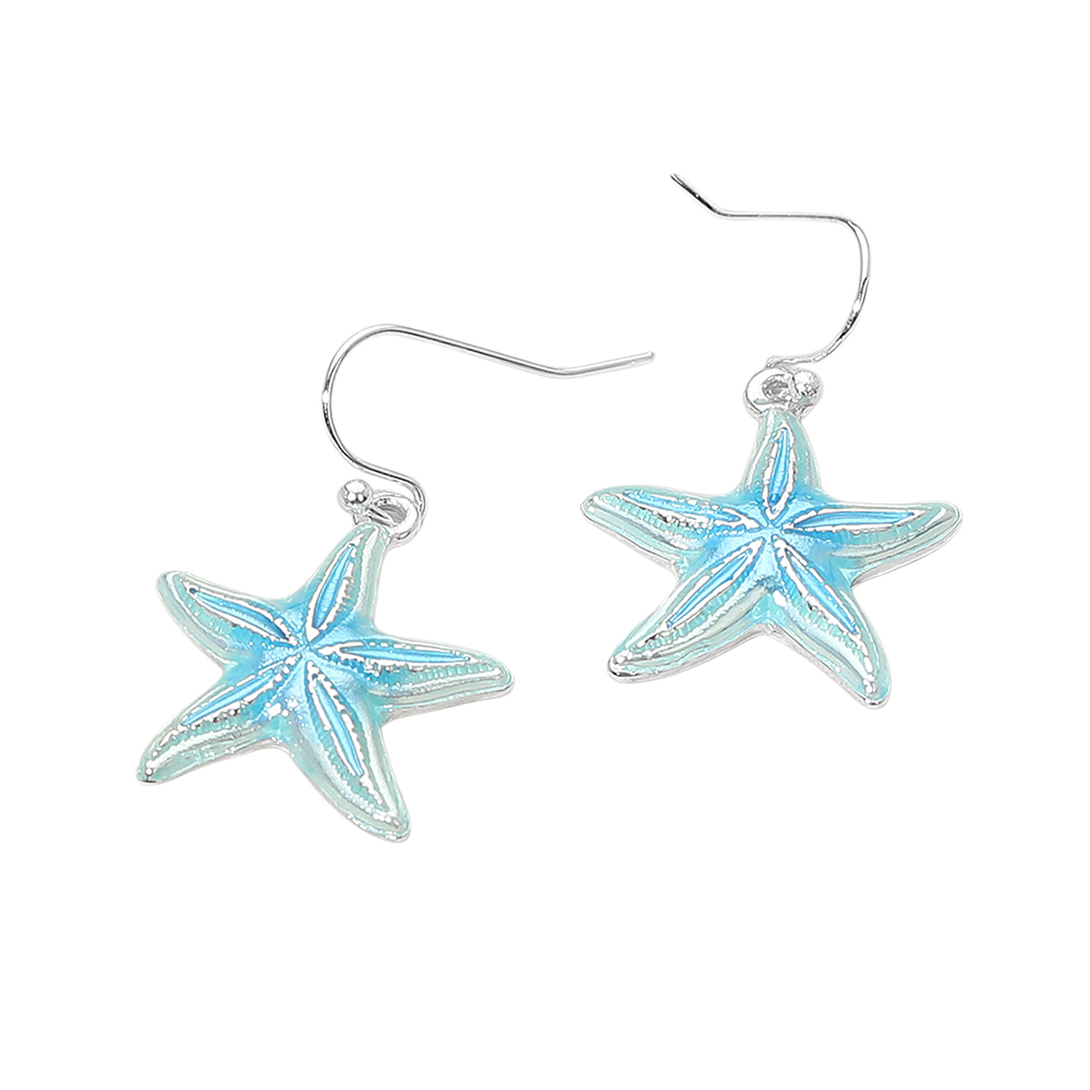 Details • Size : 0.8" X 1.25" • Fish Hook Back • Whimsical starfish dangle earrings featuring a sculpted seaside-inspired design with graceful movement. A lightweight statement accessory perfect for beach boutiques, resort collections, summer assortments, vacation gift shops, and ocean-themed jewelry displays that add playful charm to everyday styling. • Lead and Nickel Compliant