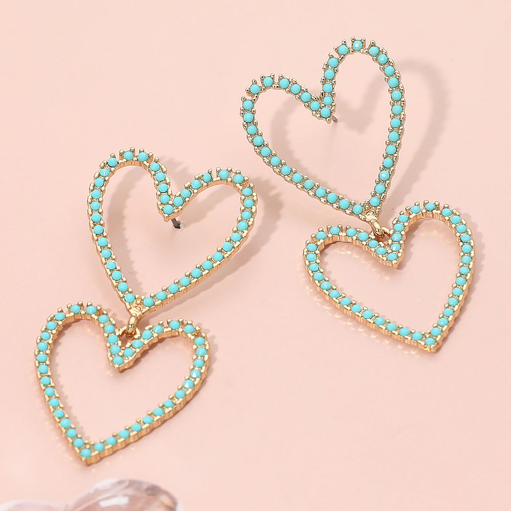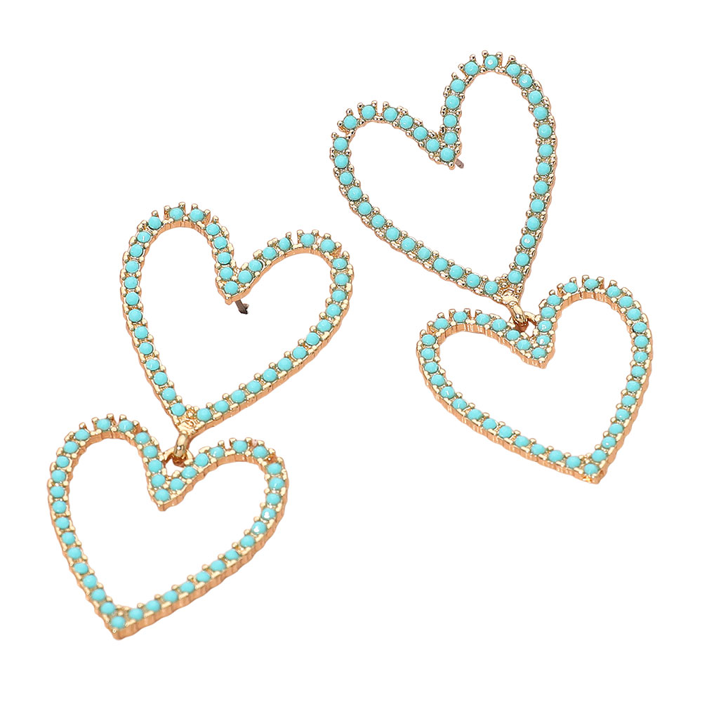 Details • Size : 1" X 2.25" • Post Back • Shine bright with these dazzling double heart drop earrings featuring sparkling rhinestone accents. Their elegant intertwined heart design adds romantic flair and playful sparkle, making them the perfect statement accessory for parties, dates, or special celebrations. • Lead and Nickel Compliant