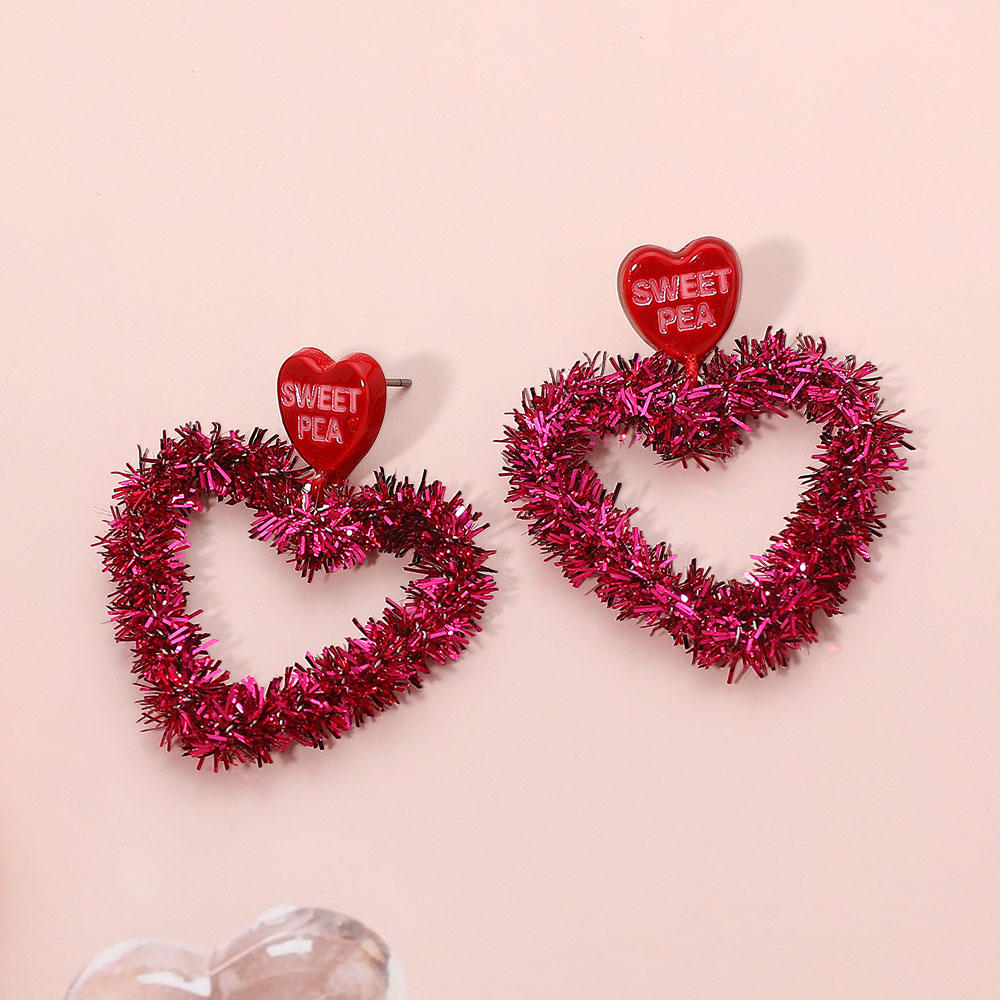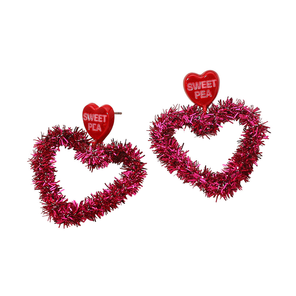 Sweet Pea Tinsel Heart Dangle Earrings Sweet Pea Tinsel Heart Dangle Earrings