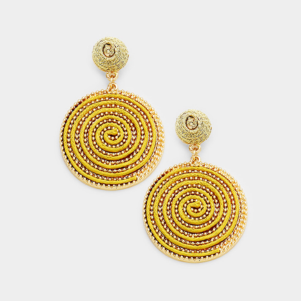 Thread Wrapped Oval Hoop Long Drop Chain Tassel Necklace