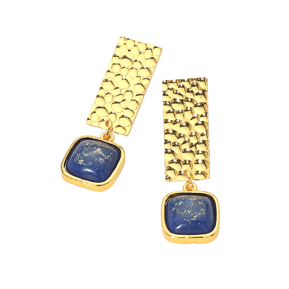 Textured Metal Bar Square Stone Cluster Drop Earrings