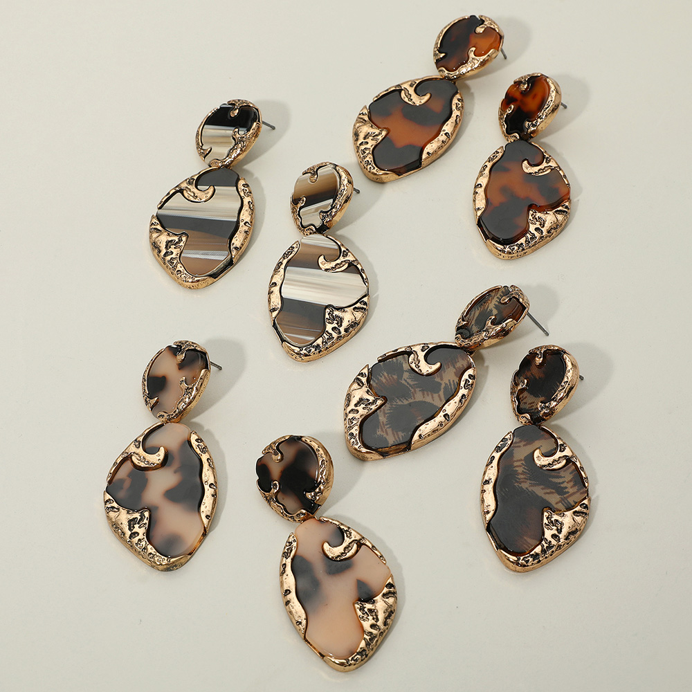Textured Metal Frame Abstract Celluloid Acetate Plate Link Drop Statement Earrings