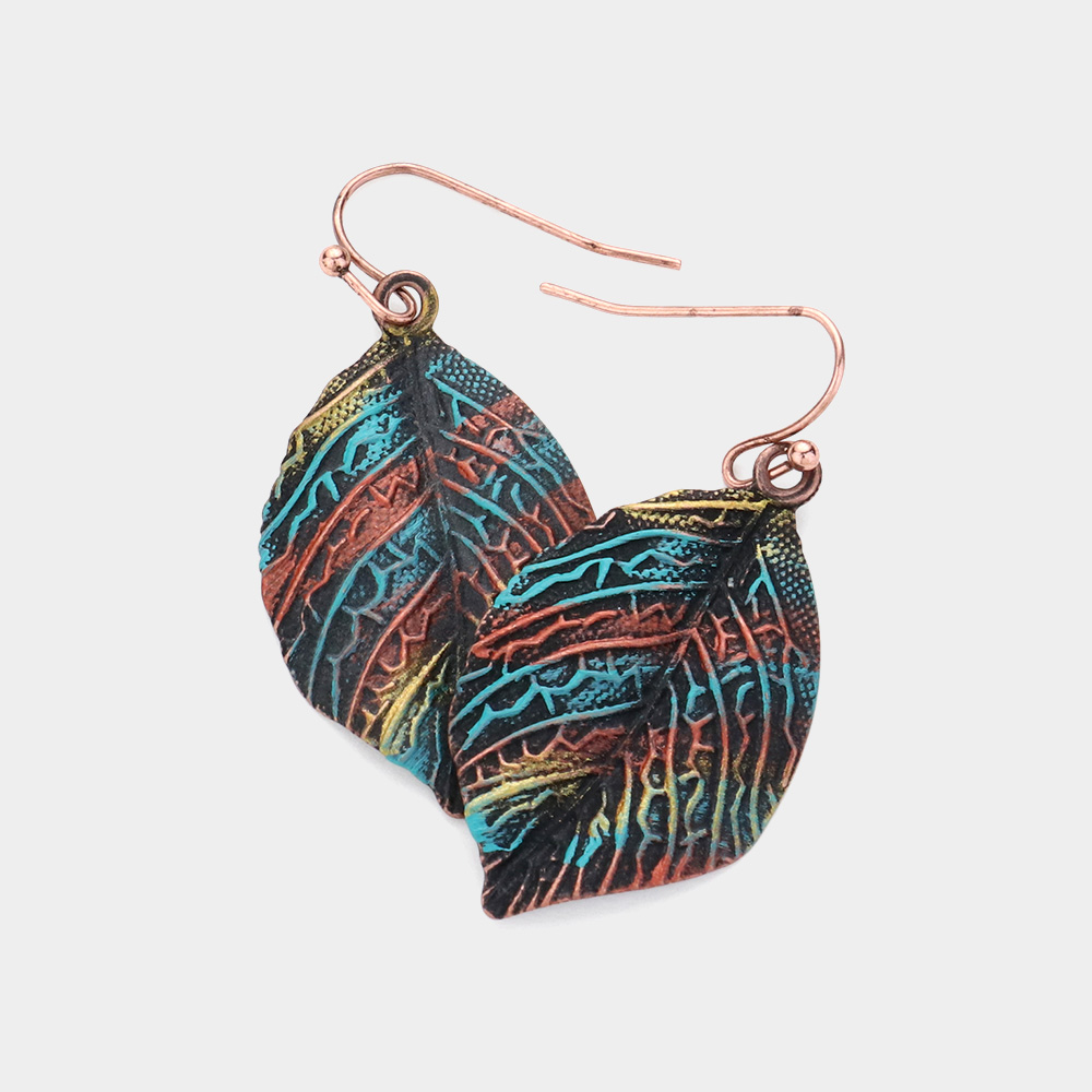 Textured Metal Leaf Dangle Earrings