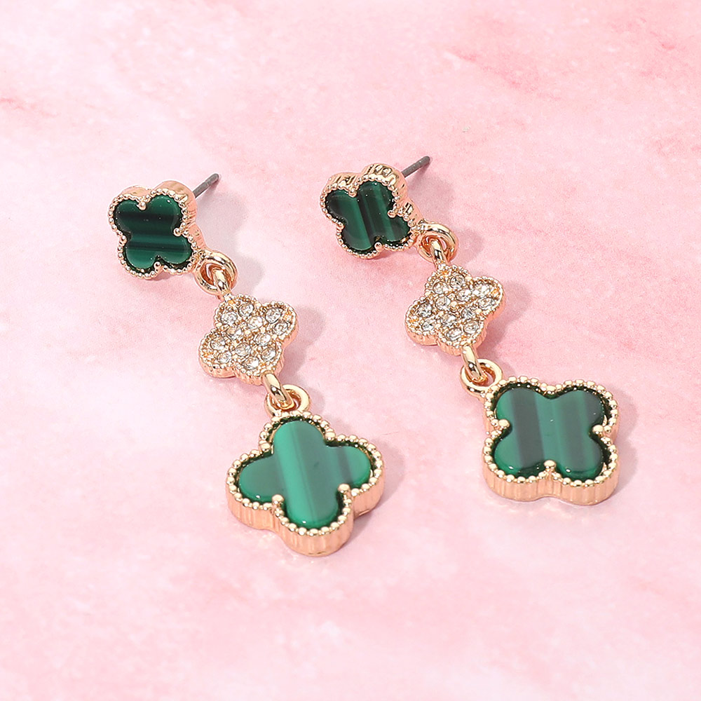 • Elegant drop earrings designed with linked quatrefoil motifs for a graceful, eye-catching silhouette. This refined style adds movement and shine, making it ideal for everyday wear or special occasions. A versatile accessory that pairs beautifully with modern outfits, classic looks, and curated jewelry collections for boutiques and gifting displays.