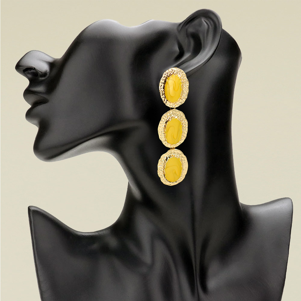 • Stylish triple oval drop earrings featuring marbled oval centers framed by textured metallic borders. The cascading design adds a touch of modern elegance, perfect for dressing up any outfit. Lightweight yet striking, ideal for parties, special events, or chic everyday wear.