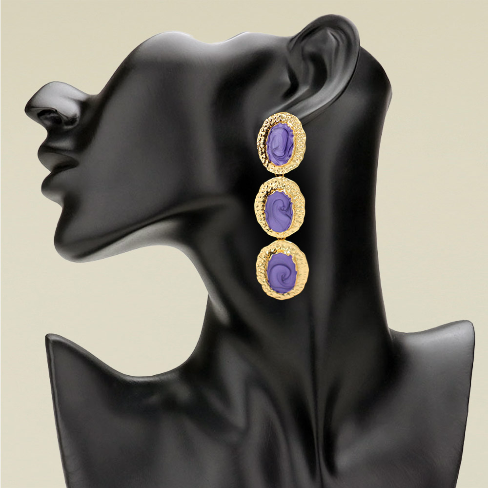 • Stylish triple oval drop earrings featuring marbled oval centers framed by textured metallic borders. The cascading design adds a touch of modern elegance, perfect for dressing up any outfit. Lightweight yet striking, ideal for parties, special events, or chic everyday wear.
