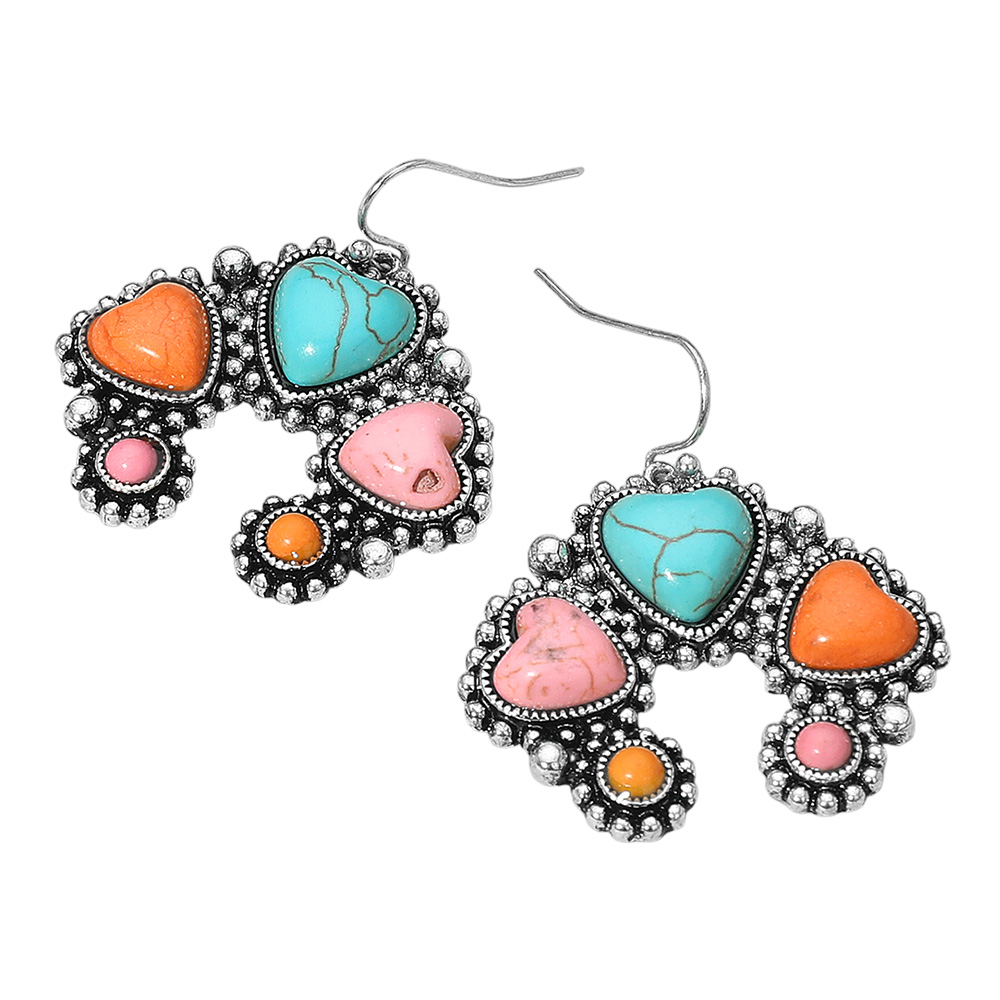 Details • Size : 1.5" X 1.6" • Fish Hook Back • Add artistic flair to your look with these boho heart gemstone drop earrings. Featuring a mix of vibrant stones in a vintage-inspired setting, they bring color, charm, and personality to any outfit—perfect for free-spirited styles and statement accessorizing. • Lead and Nickel Compliant