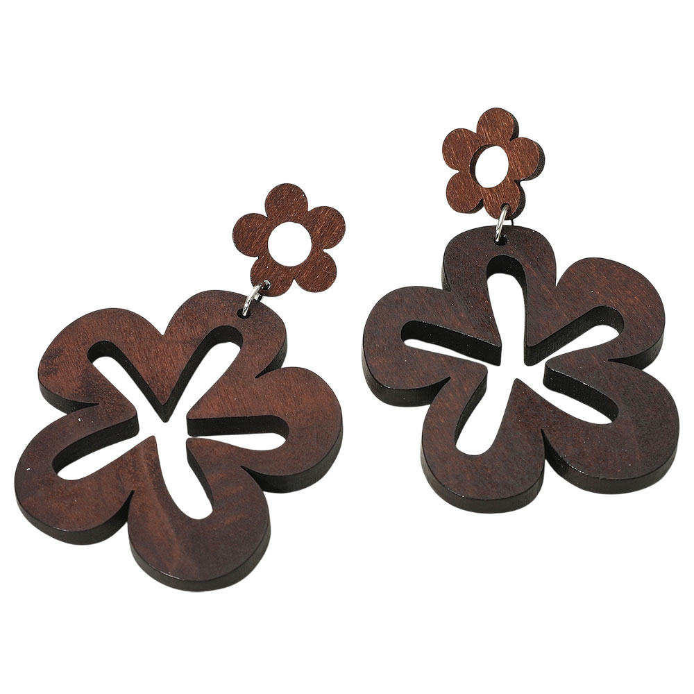 Wooden Flower Cutout Drop Dangle Earrings Wooden Flower Cutout Drop Dangle Earrings