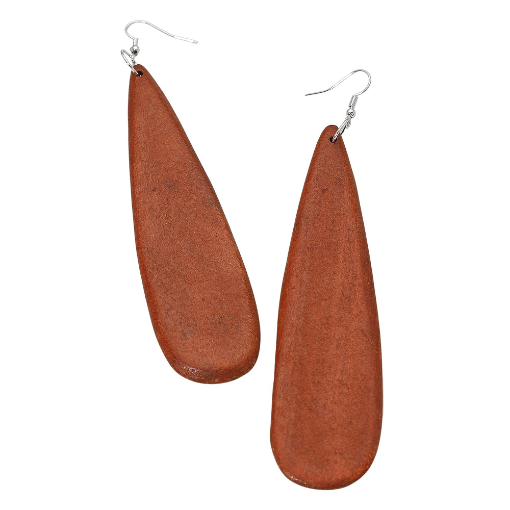 Details • Size : 1.2" X 5.4" • Fish Hook Back • Lightweight long teardrop wooden dangle earrings featuring an elongated organic shape and smooth handcrafted look. A bold yet natural statement accessory perfect for casual, boho, or artisan-inspired outfits, offering comfortable all-day wear and unique style. • Lead and Nickel Compliant