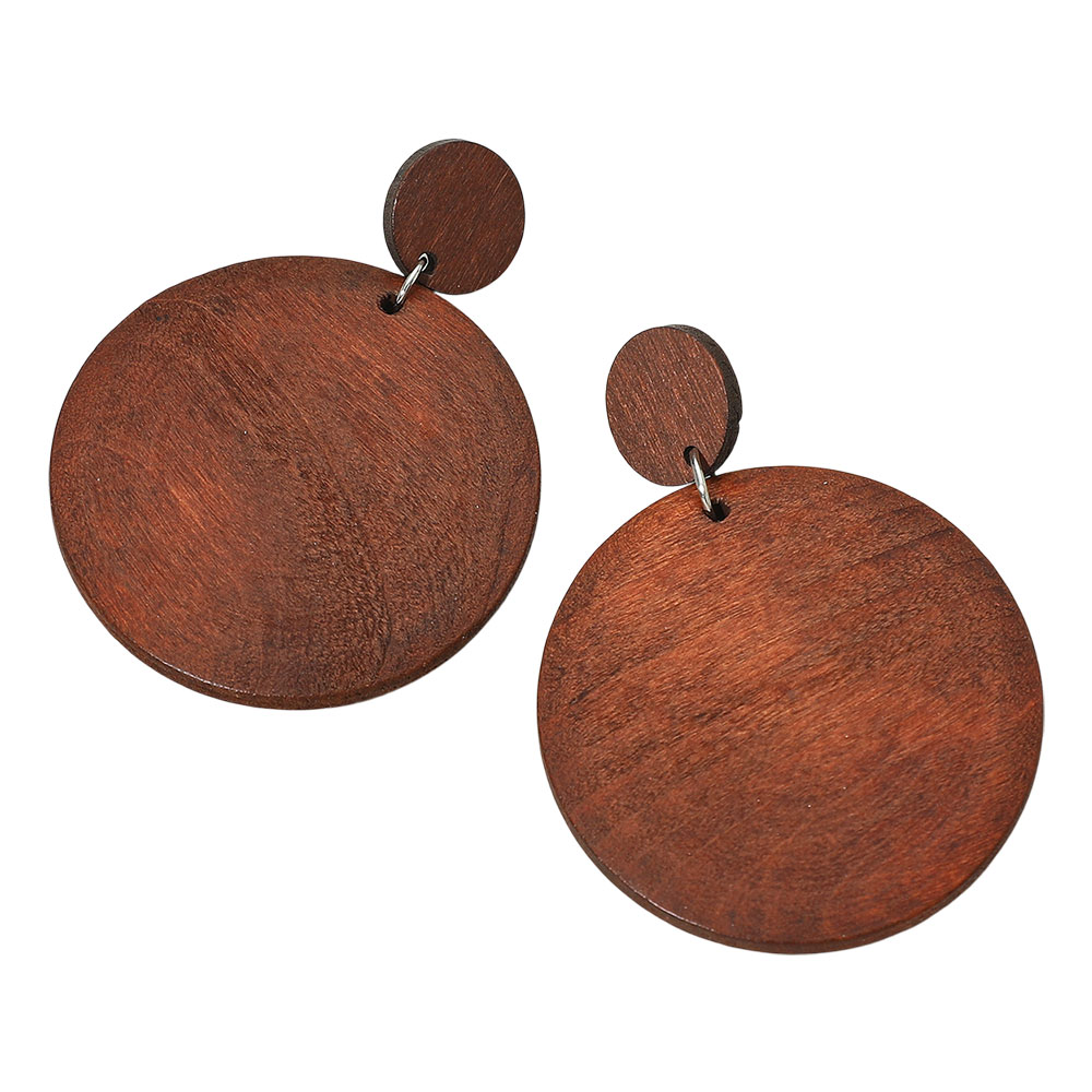 Details • Size : 1.9" X 2.7" • Post Back • Lightweight round dangle earrings with a double-disc drop silhouette, offering a bold geometric statement look. Comfortable for all-day wear and perfect for casual, boho, or everyday styling. Great addition to boutique accessory displays and curated jewelry collections. • Lead and Nickel Compliant