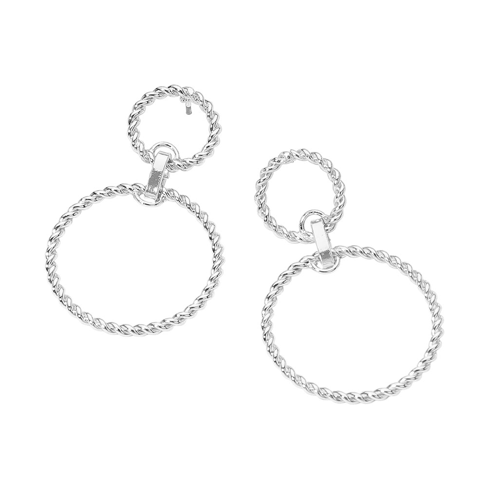 Details • Size : 1" X 1.6" • Post Back • These elegant double hoop earrings feature a twisted rope-inspired design, creating a chic and modern statement look. Perfect for both casual and formal occasions, they add a touch of sophistication and movement, making them an effortless accessory for any style ensemble. • Lead and Nickel Compliant