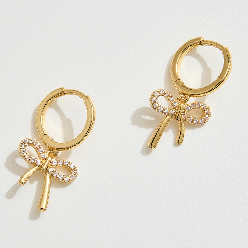 14K Gold Dipped CZ Stone Paved Bow Dangle Huggie Hoop Earrings 14K Gold Dipped CZ Stone Paved Bow Dangle Huggie Hoop Earrings 14K Gold Dipped CZ Stone Paved Bow Dangle Huggie Hoop Earrings 14K Gold Dipped CZ Stone Paved Bow Dangle Huggie Hoop Earrings