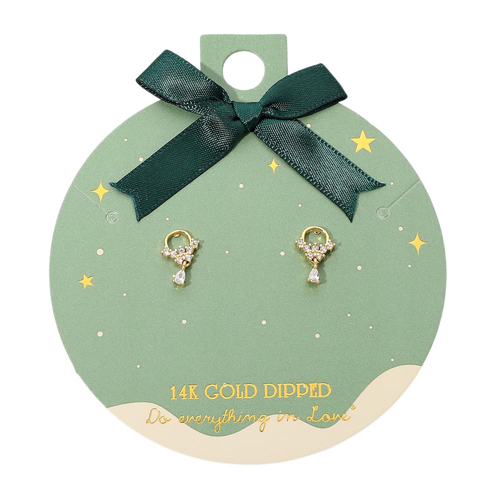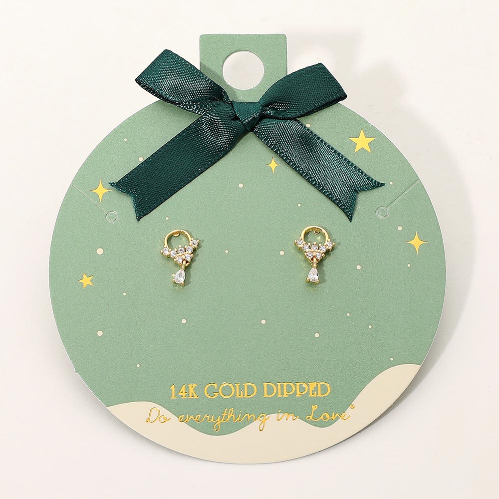 Details • Size : 0.3" X 0.5" • Post Back • Dainty mini crystal bow stud earrings featuring a petite looped design topped with clustered sparkle and a tiny teardrop drop. Their delicate, feminine silhouette makes them perfect for gifting, seasonal outfits, special occasions, or adding a subtle elegant shimmer to everyday style. • Gold Dipped • Hypoallergenic • Lead and Nickel Compliant • Made In Korea