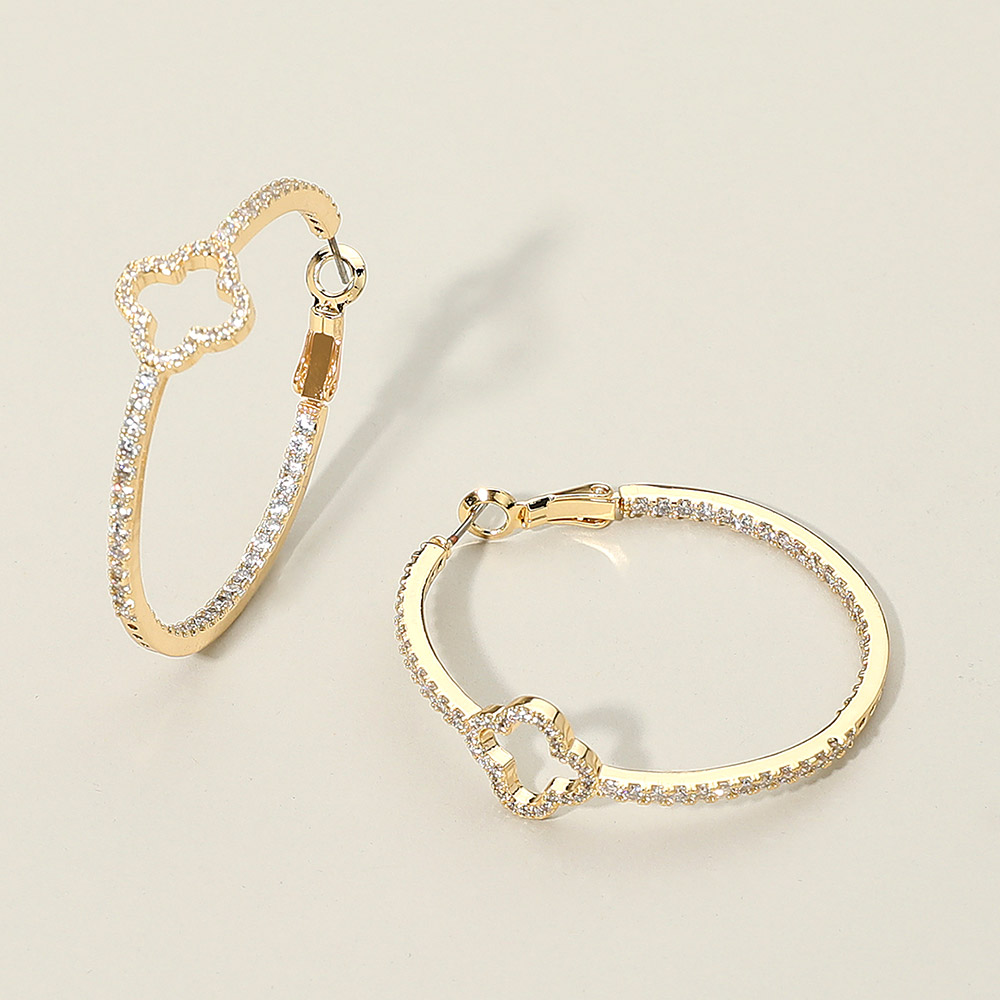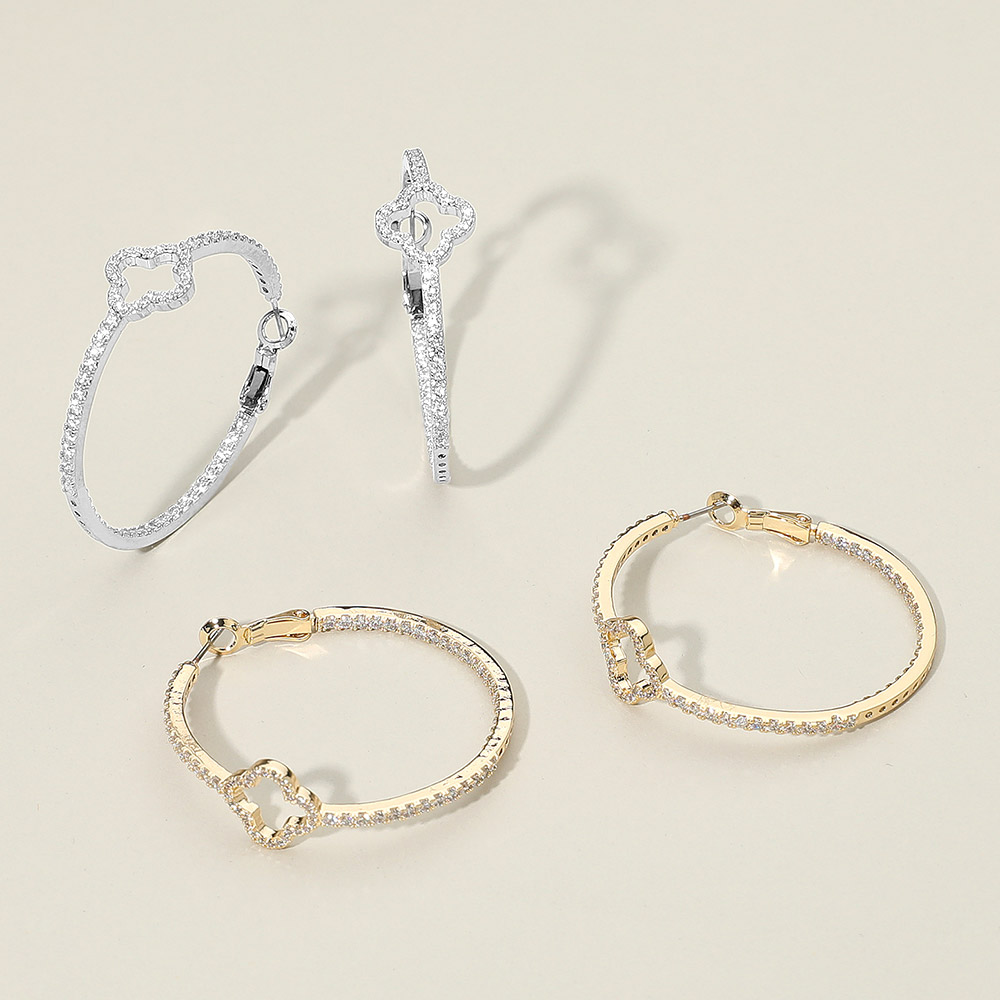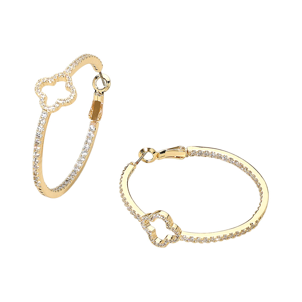14K Gold Plated CZ Stone Paved Open Quatrefoil Accent Hoop Earrings 14K Gold Plated CZ Stone Paved Open Quatrefoil Accent Hoop Earrings 14K Gold Plated CZ Stone Paved Open Quatrefoil Accent Hoop Earrings